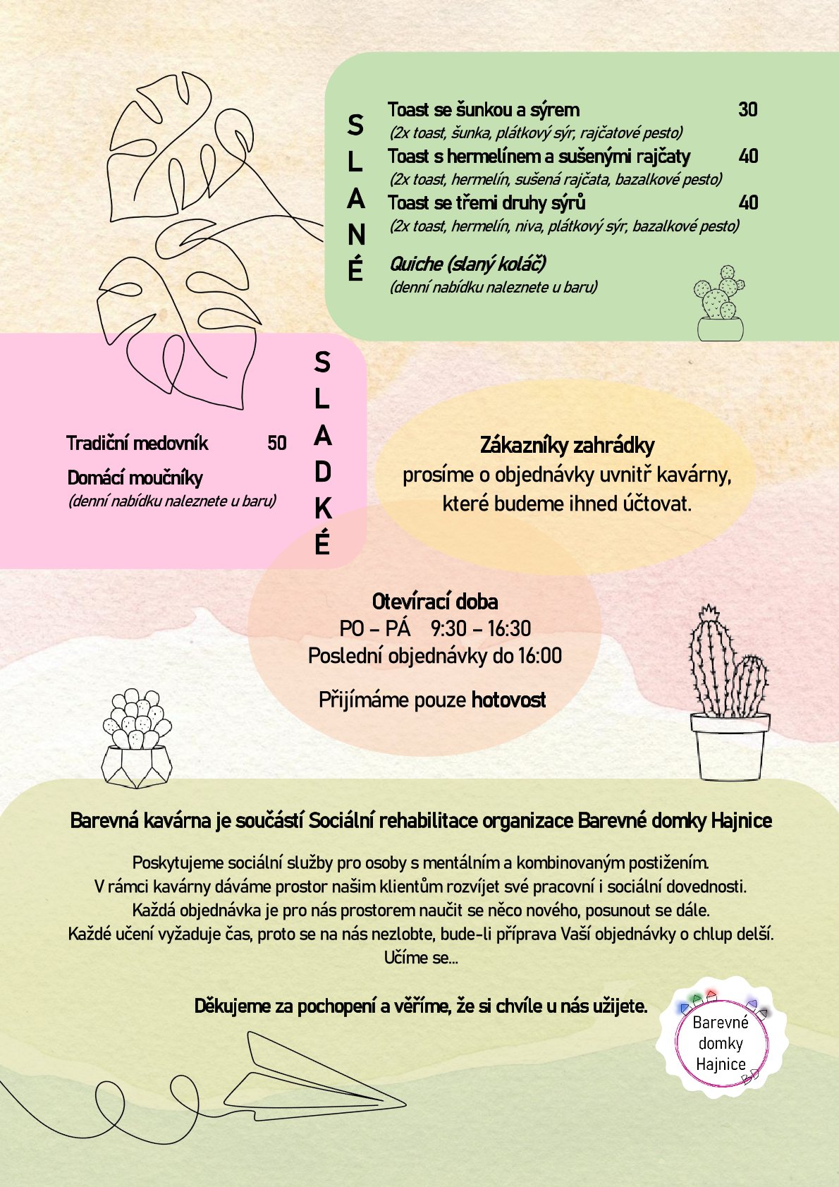 V době víkendů a státních svátků je Barevná kavárna uzavřena.