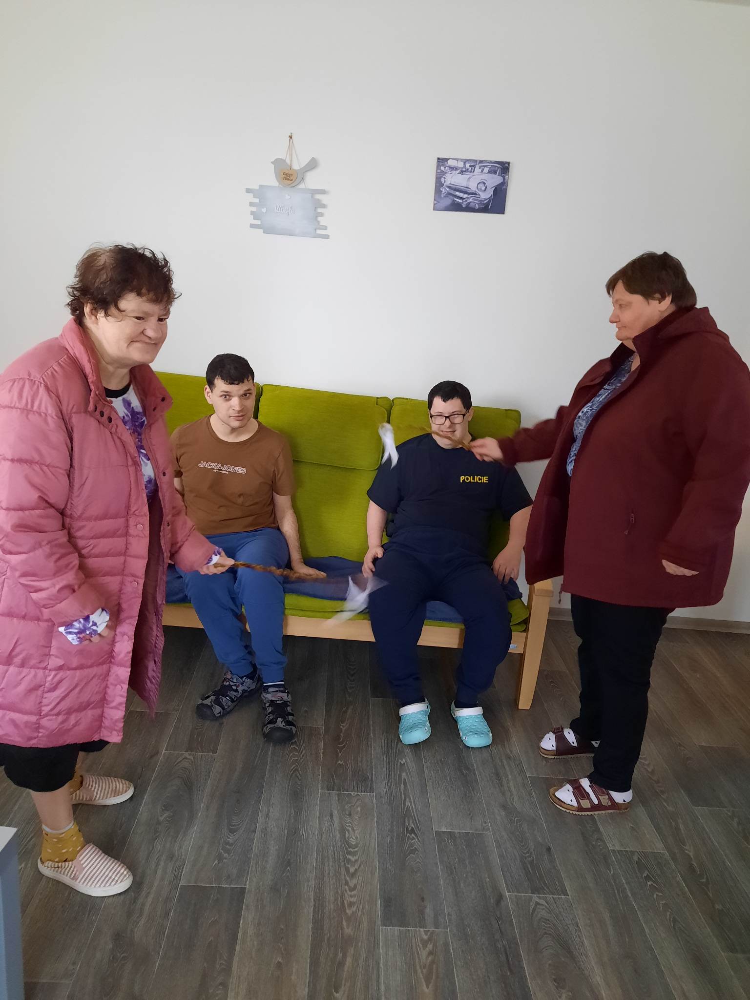 Klienti se zapojili do sváteční výzdoby svého domova, asistentka předvedla klientům pletení pomlázek a následně nesměla chybět ani samotná koleda. A kdo se koledy účastnil? 🐣 ... dámy z Modrého domku, které koledníky rády navštívily, aby během dalšího roku neuschly. 🤩👩🏻 O to se pánové s pomlázkami postarali na výbornou. 😉