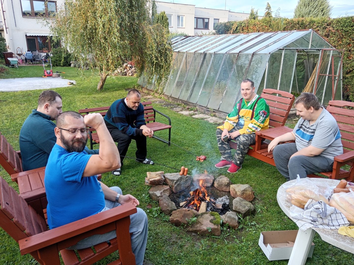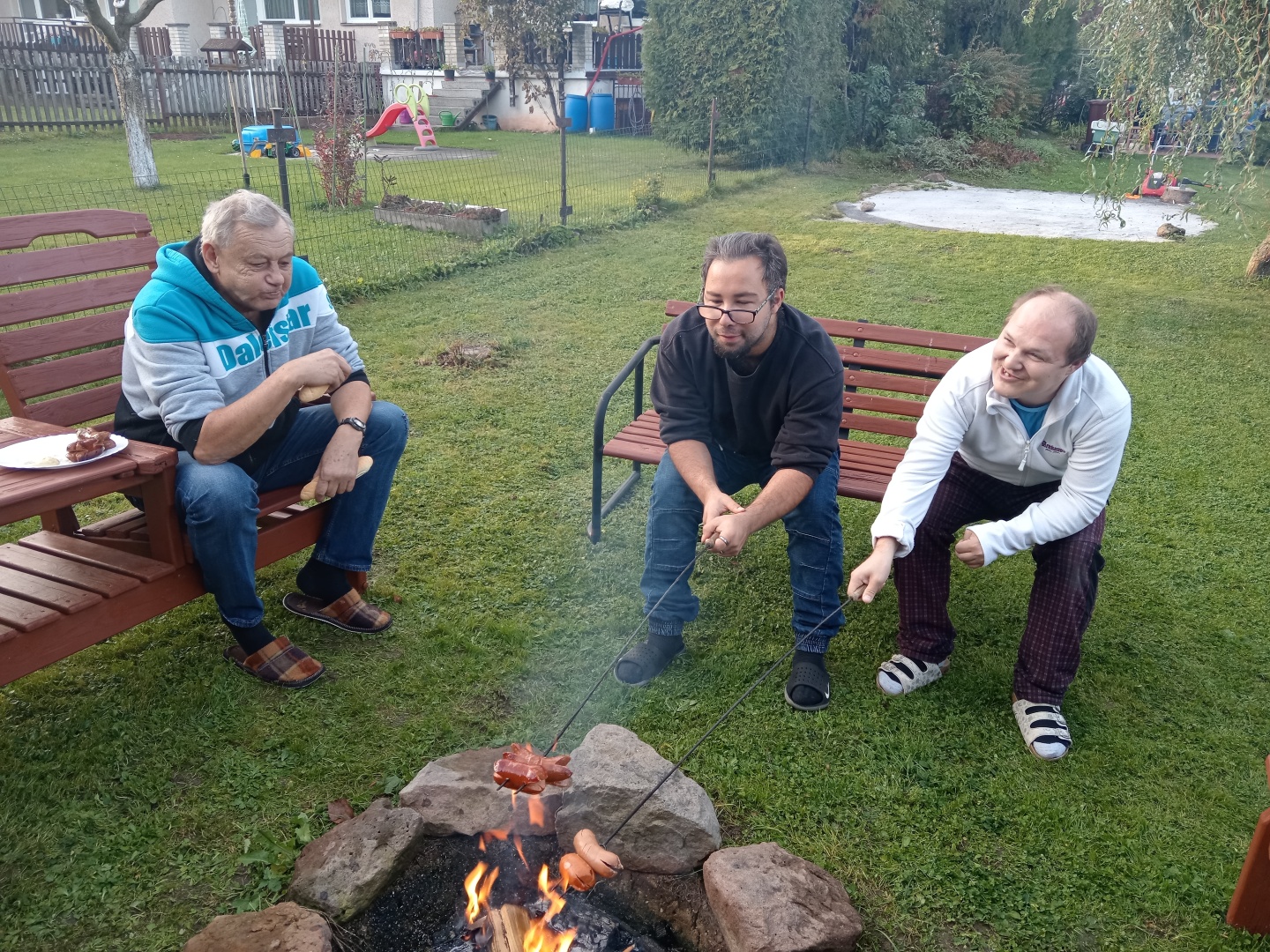 Klienti Růžového domu ve Dvoře Králové nad Labem společně se svými přáteli ze Stříbrného domu s nadšením využili i poslední říjnové dny, kdy bylo teplo a slunečno, k posezení na zahradě a opékání buřtů. ☀️🪕