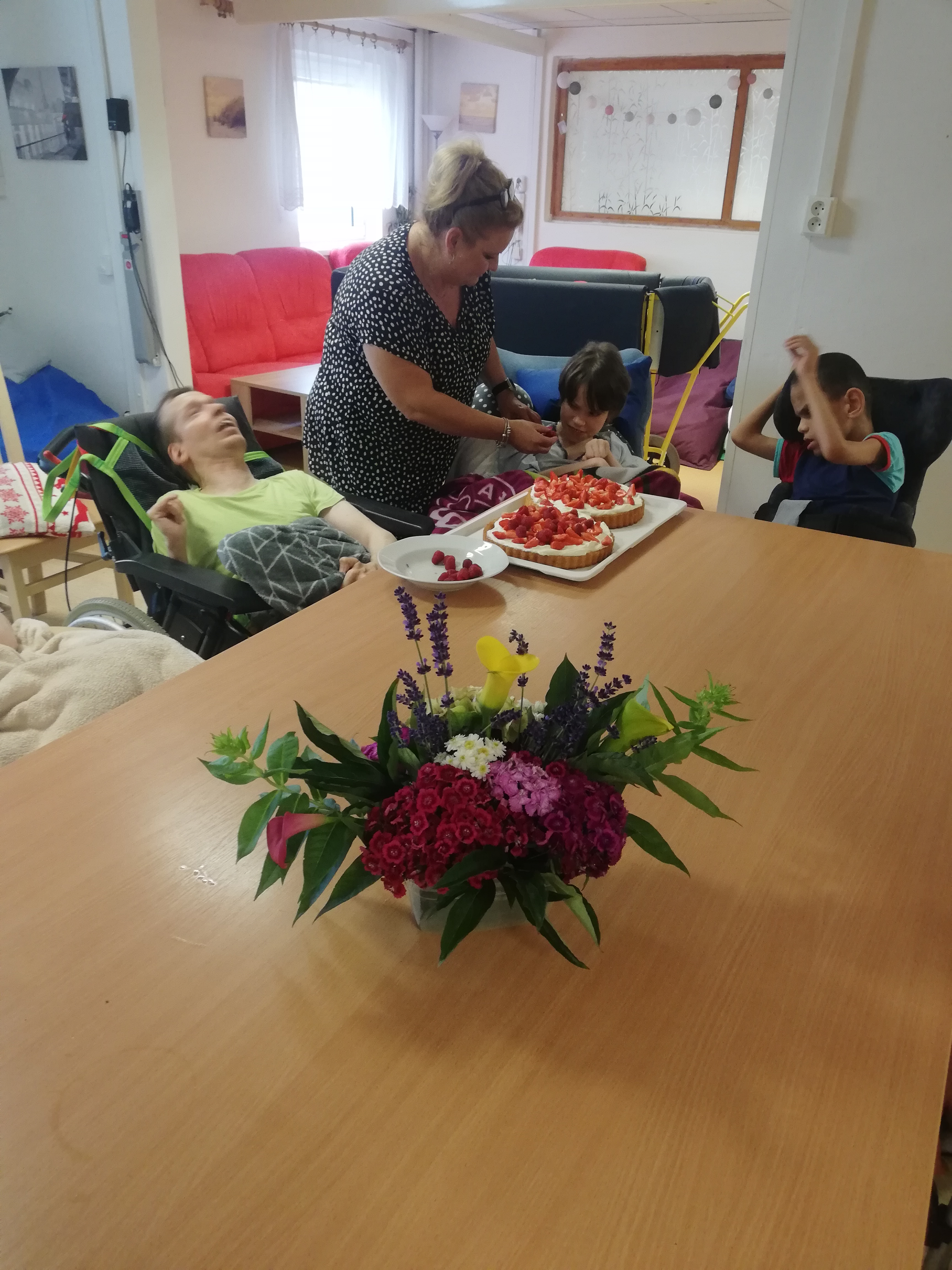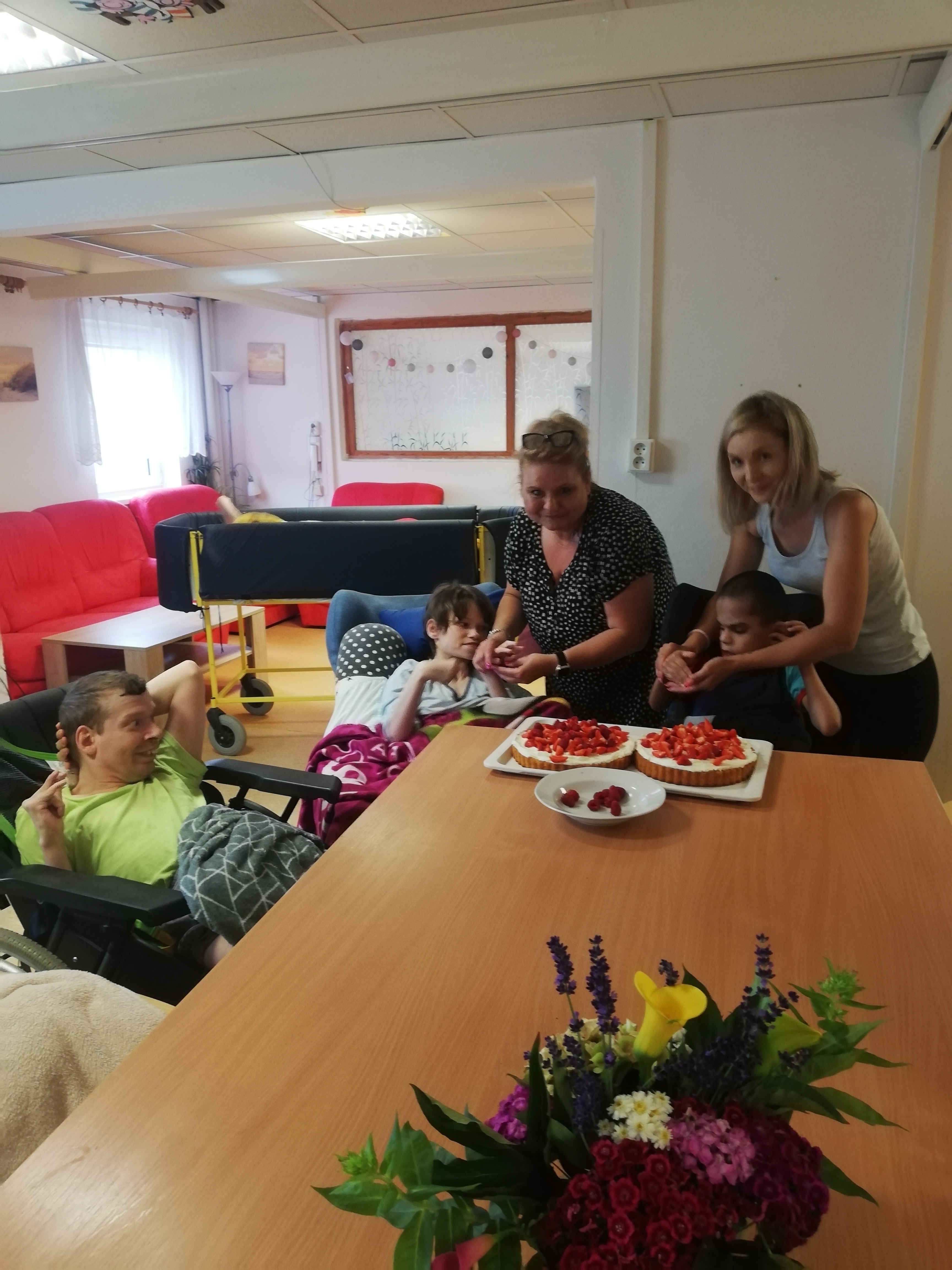 Dne 24. 6. proběhla na Slunečném oddělení a na denní místnosti společná aktivizace klientů - pečení. V receptech byl vybrán piškotový koláč se šlehačkou a čerstvým ovocem. 🍰