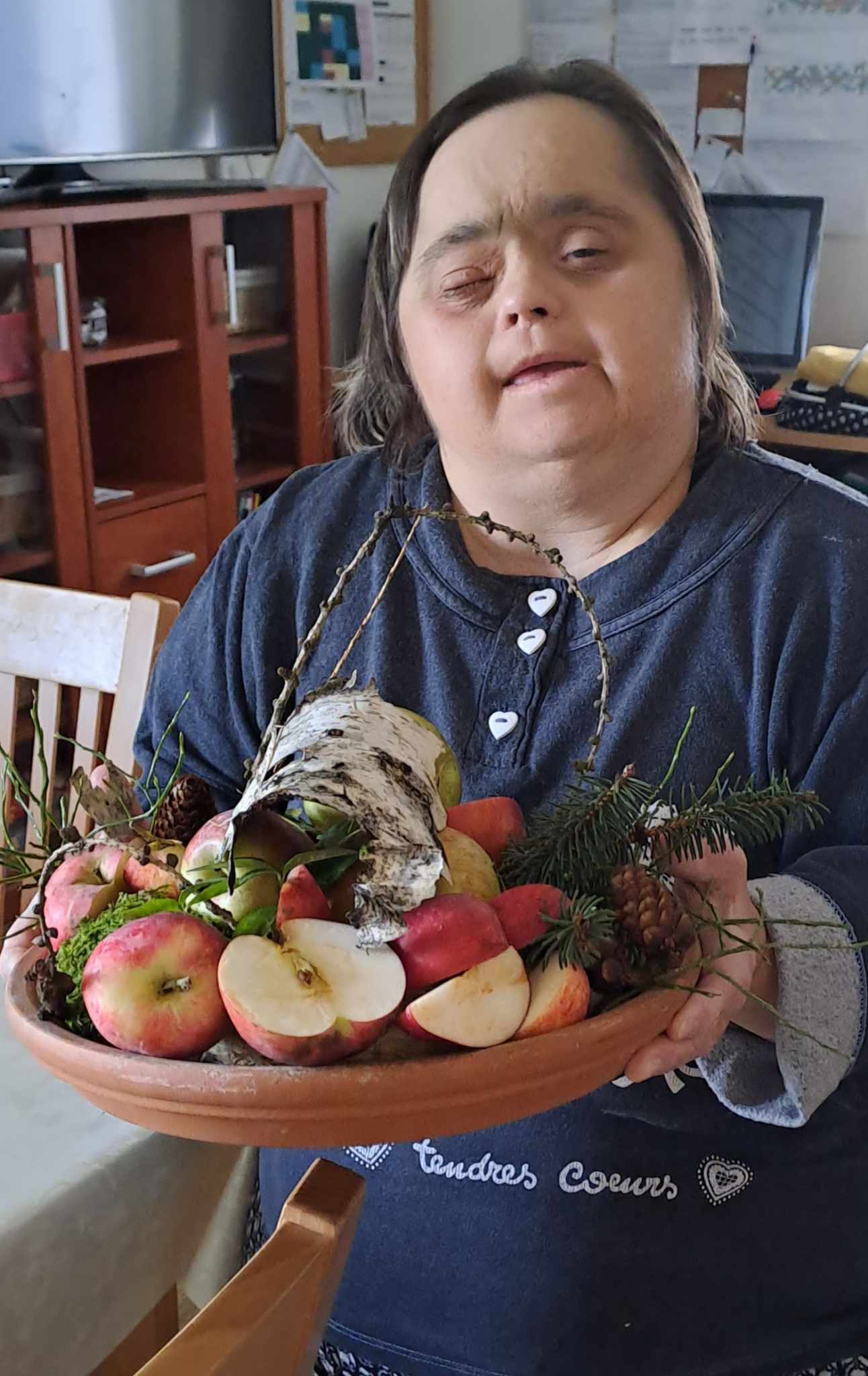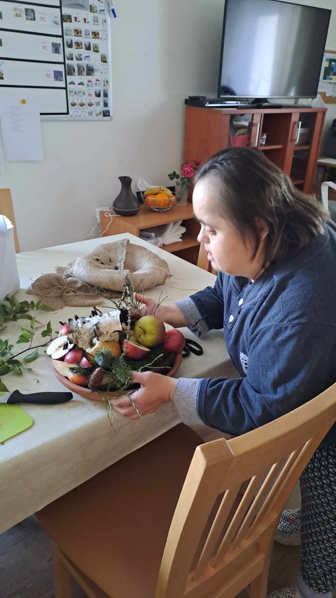Za podpory asistenta připravili podzimně laděné věnce, kde nemohla chybět jablíčka i přírodniny z nedalekého lesa. 🍎🌲