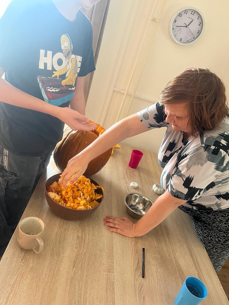 Léto už nás opustilo a máme tu podzim. 🍂 Klienti Žlutého domku z Hajnice se společně pustili do výroby podzimní dekorace. A jelikož se nám blíží Halloween 👻, vytvořili klienti strašidelné dýně. 🎃