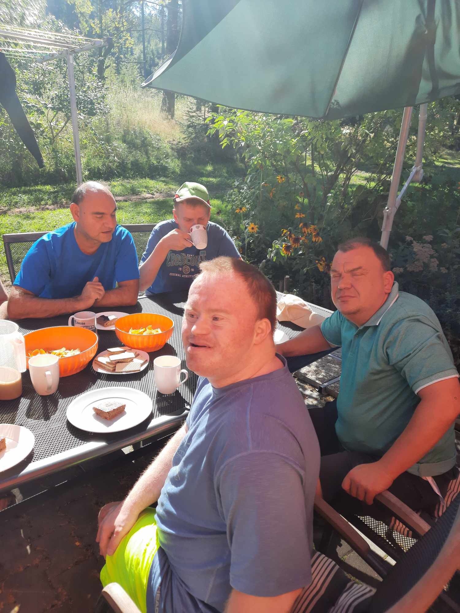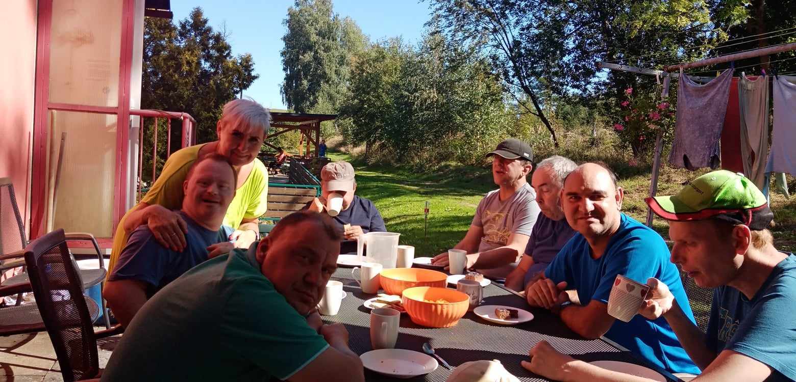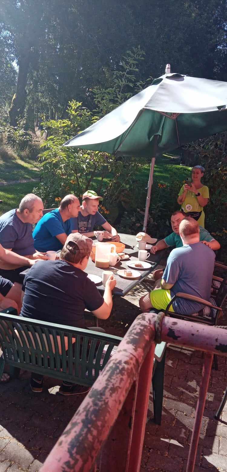 Přivítali jsme návštěvu pánů z Oranžového bytu z Trutnova. 👨🏽🦱👨🏽🦱 S klienty jsme připravili pohoštění, jablečný koláč 🥧 , kávu ☕, džus a trutnováci zase dovezli slané pochutiny. 🥨