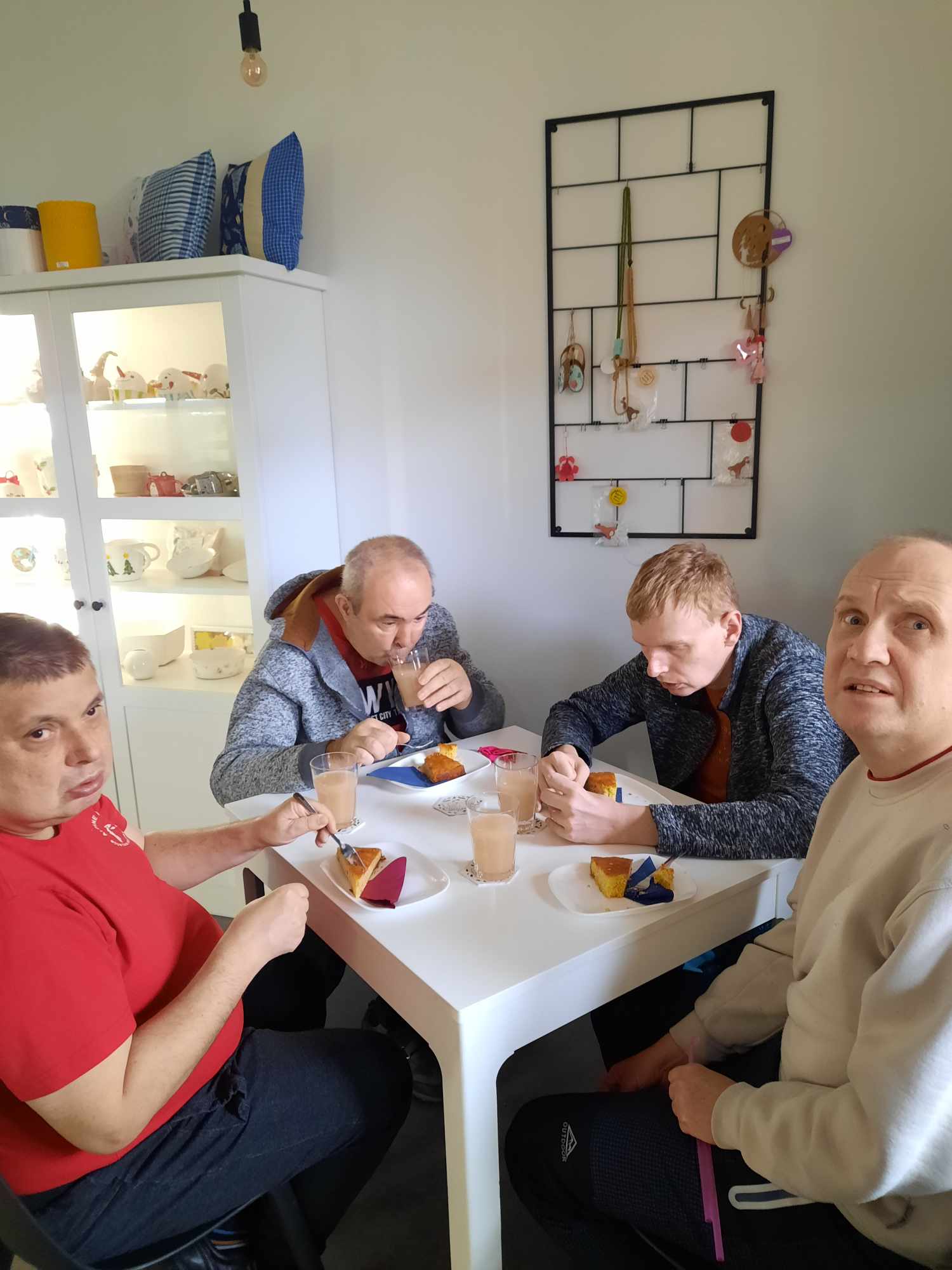 Po mrazivé procházce zavítali pánové do Barevné kavárny, kde si pochutnali na sladkém dezertu. 🍰☕