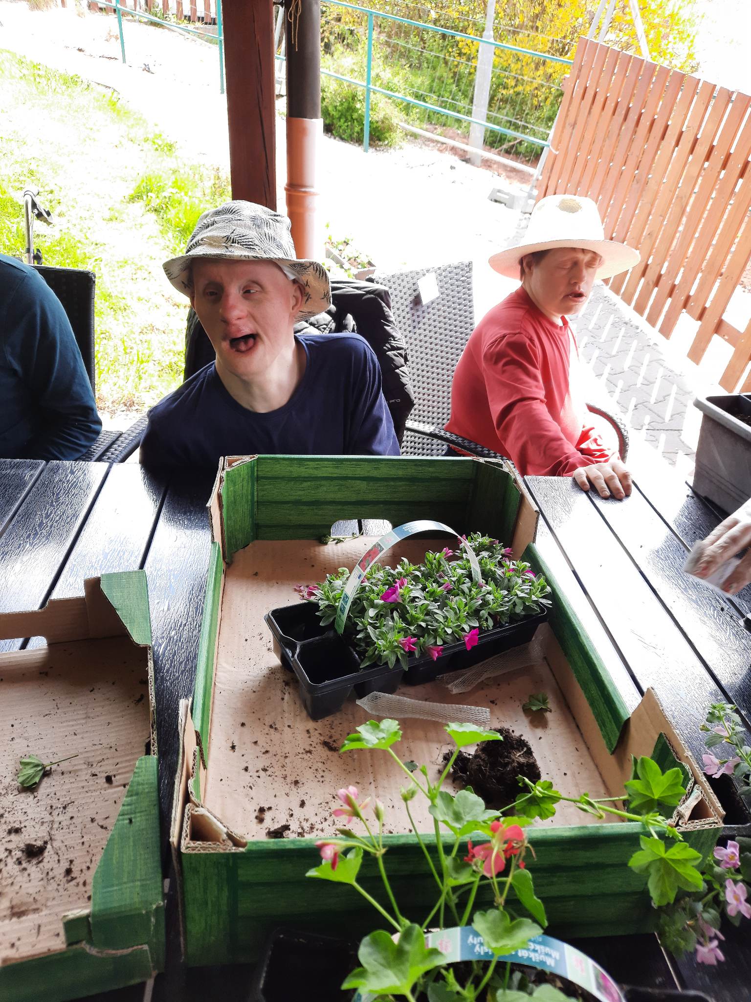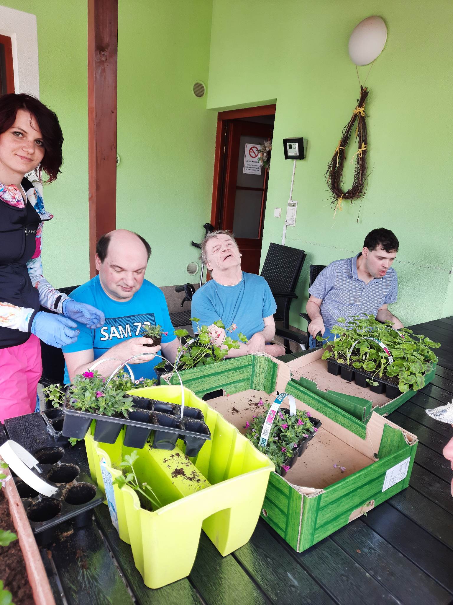 Páteční den klienti Zeleného domku věnovali zahradním pracím. Kalendář už naznačuje, že jaro je TU (i když počasí nás stále pokouší). ☀️🌦️ Za podpory asistentky klienti do připravených truhlíků sázeli jarní květiny, aby i domek po zimě získal hezký jarní vzhled. 🌺🏡💮