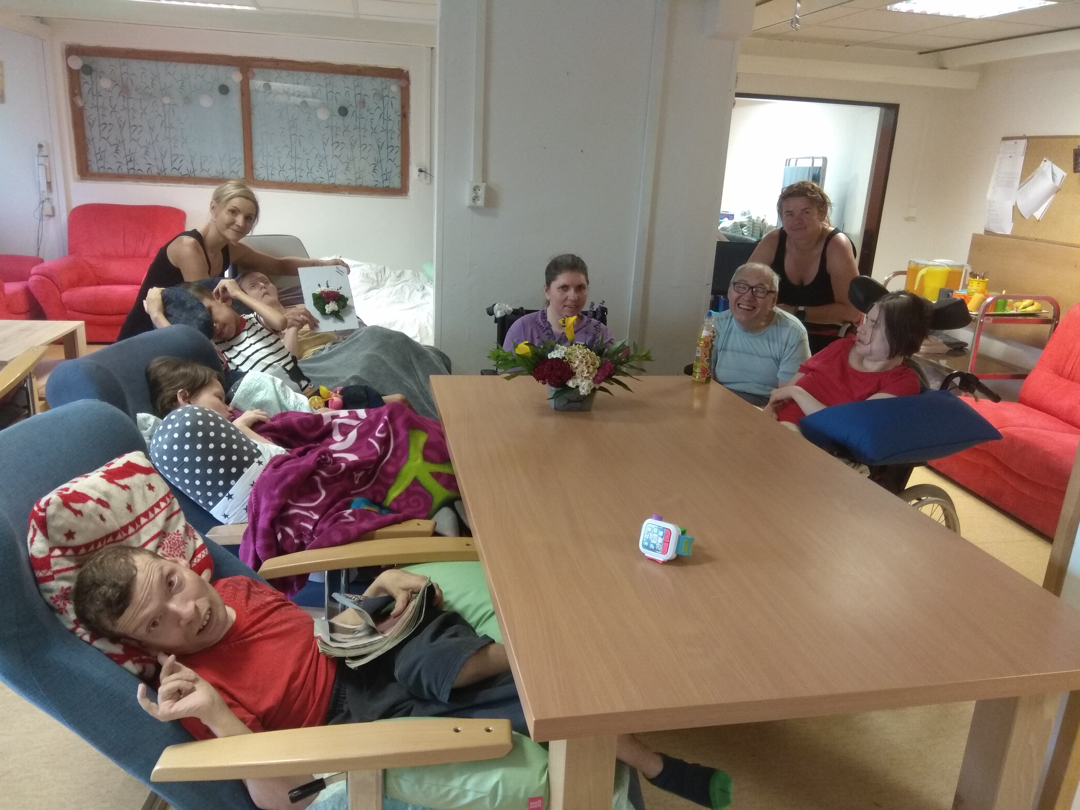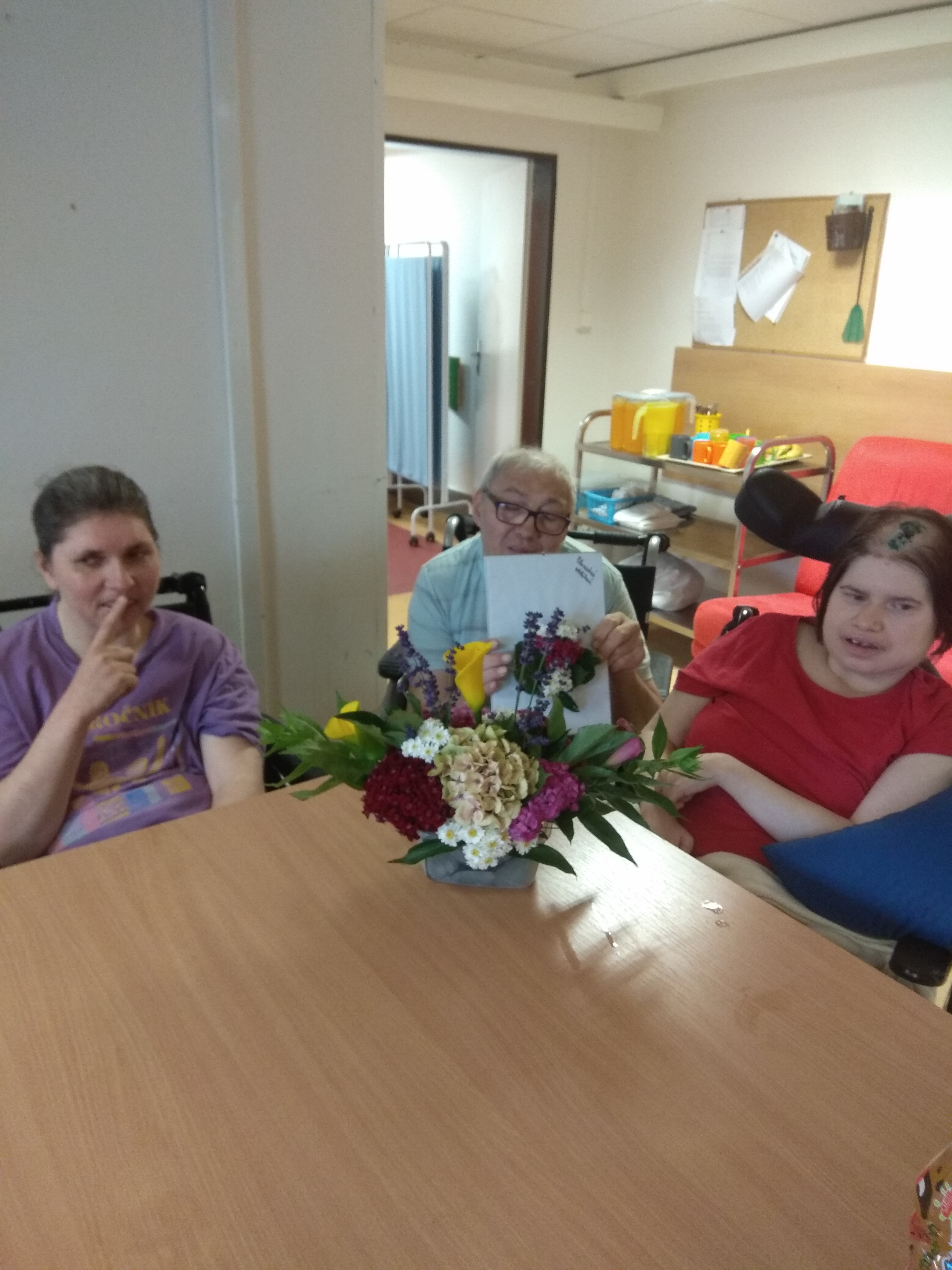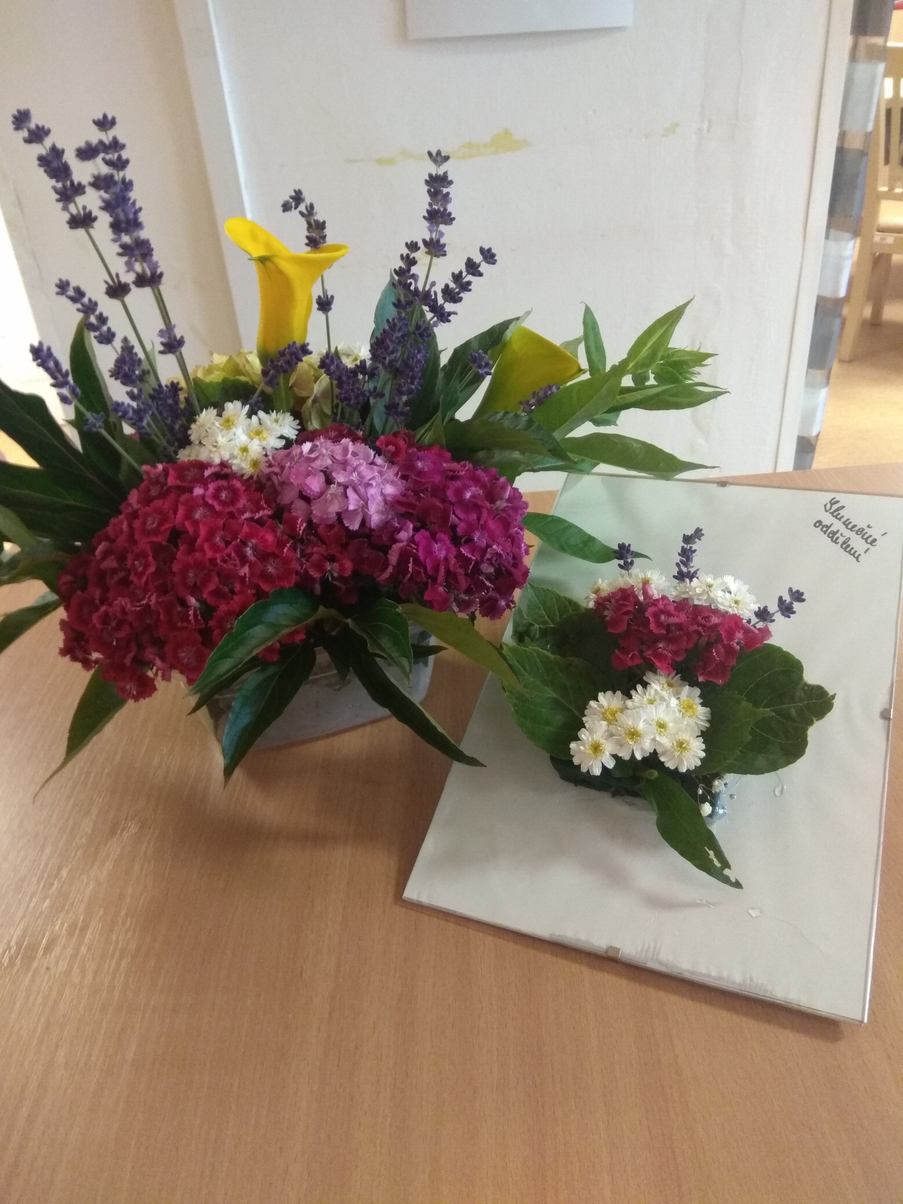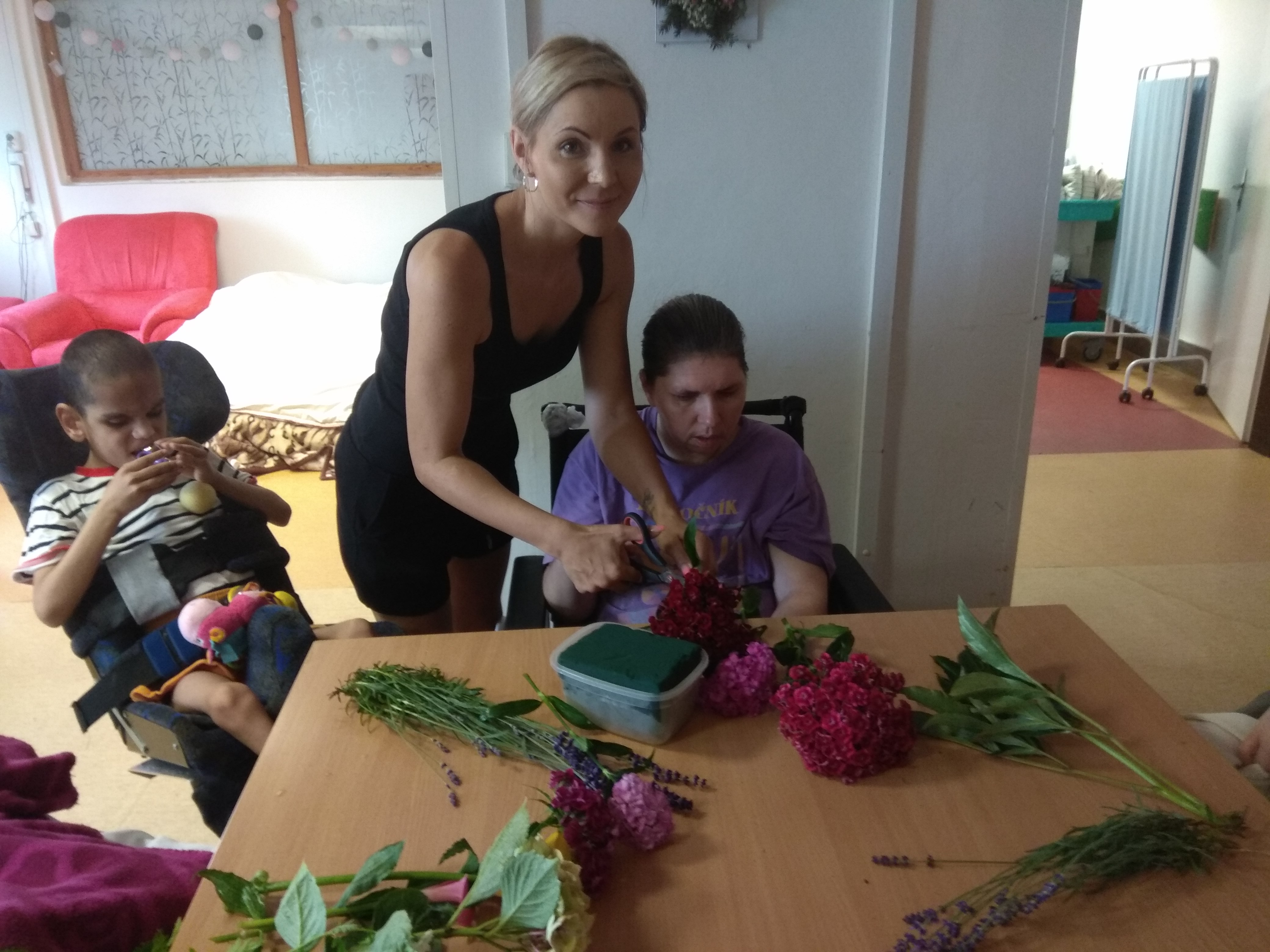 Klienti na Slunečném oddělení společnými silami s asistenty vytvořili dekoraci z živých květin. 💐