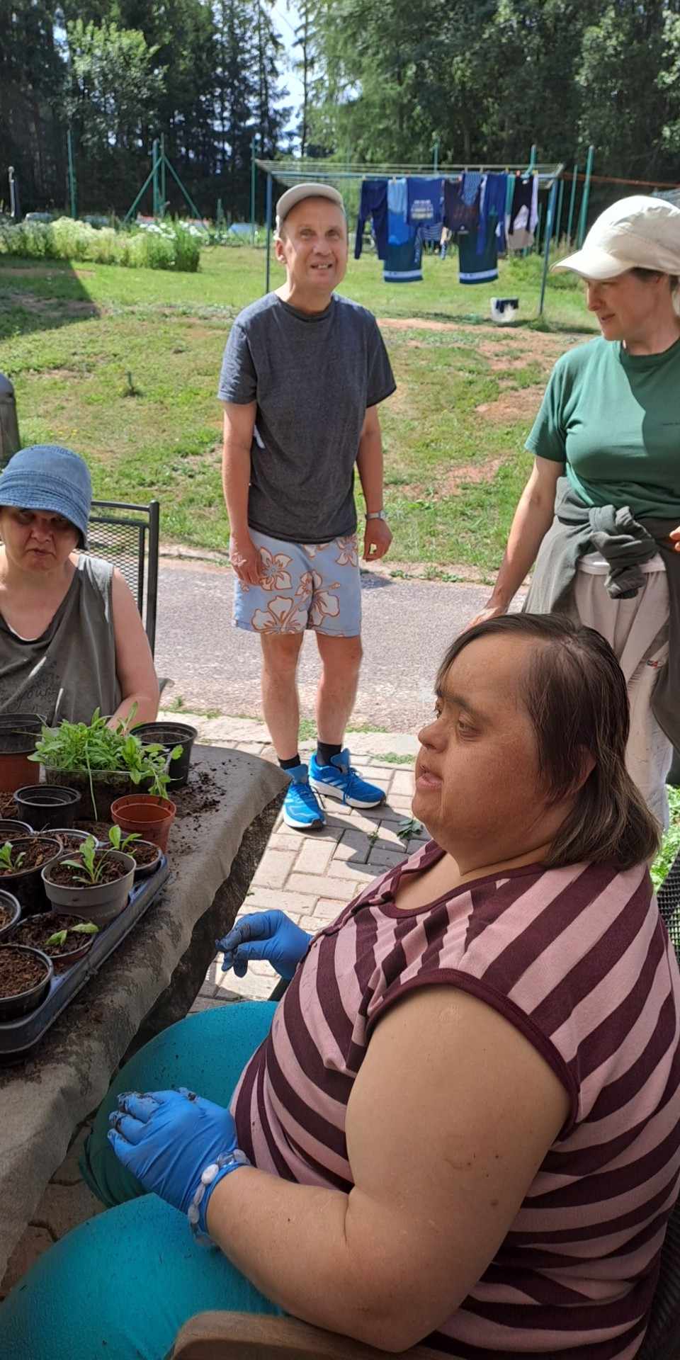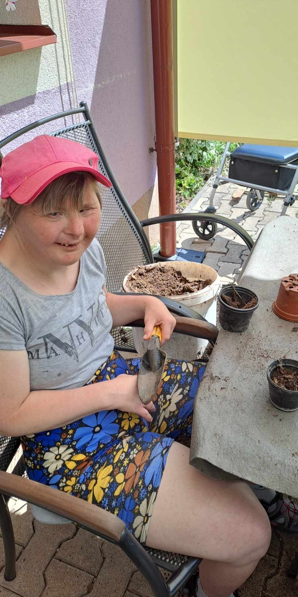 Zahradní práce probíhají od jara na podzim. 🧹 Klienti si udržují v čistotě nejen své domácnosti, ale i okolí domků. Sousedská výpomoc funguje i u nás 😊 Se zahradními pracemi přišli pomoci i klienti z Modrého a Červeného domku. 👨🏽🦰👩🏽🦰