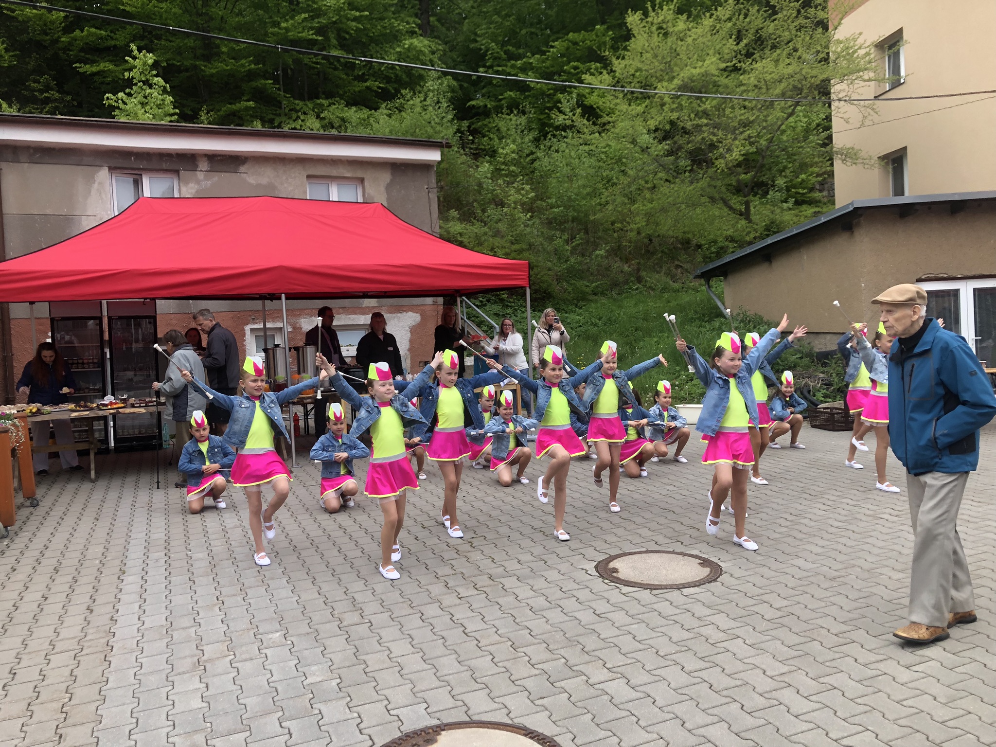 Hostitelé měli připravený bohatý kulturní program - nechyběla živá kapela 🎤, vystoupení dětské taneční skupiny 💃🏽🕺🏽a pro přítomné byla přichystána i ukázka práce policejního psovoda Městské policie ČR. 🐕🦺