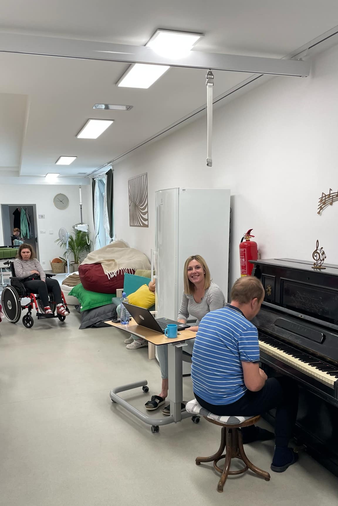 Klienti a asistenti Slunečného oddělení měli možnost poslechnout si krásné hudební představení, které si připravil pan Petr z Červeného domku 🎹 s paní asistentkou Lenkou. 🎤 Společně takto vystupují před klienty a pracovníky zhruba jednou do měsíce. ✨