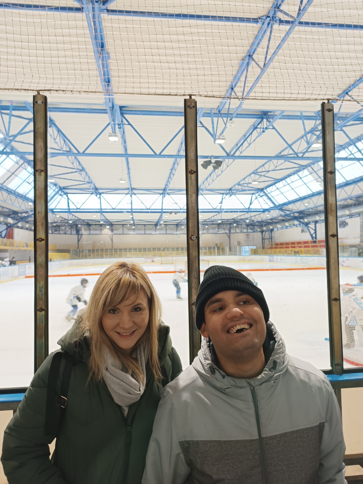 Pan Pavel z Měsíčního bytu společně s asistentkou spojili nákup se zážitkem. 🛍️ Po vybrání vánočních dárků v obchodě navštívili blízký zimní stadion HC Dvůr Králové, kde probíhal hokejový zápas 4. třídy - a to Dvůr Králové n/L x Trutnov. 🏒❄️ Skvělou atmosféru si užívali nejen sledováním, ale především fanděním. 🤩