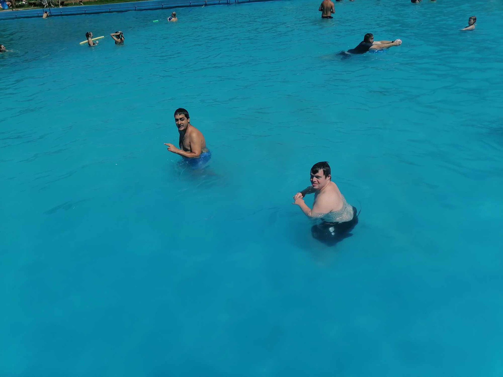 ☀️🌡️ Teploty atakovaly tropické hodnoty, a tak klienti Zlatého domu sbalili plavky a vyrazili do nedalekého koupaliště ve Chvalči. 😎🏖️ Příjemné osvěžení uvítali všichni přítomní.