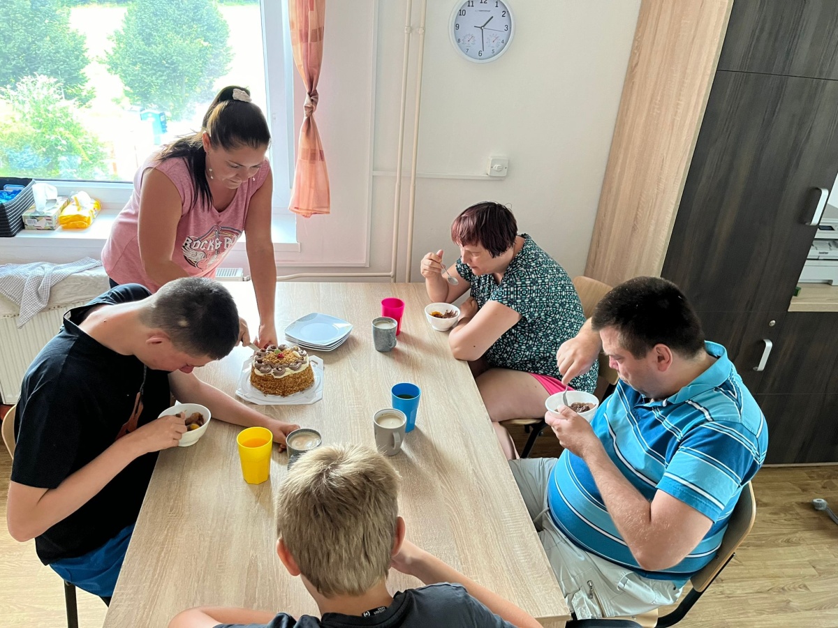 Pan Jakub oslavil své jmeniny se spolubydlícími na Žlutém domku. 🥳 Společně s asistenty připravili pohoštění, na kterém si následně v rámci oslavy všichni moc pochutnali. 🥂🎂 Oslava byla v příjemném a poklidném duchu. 🤗