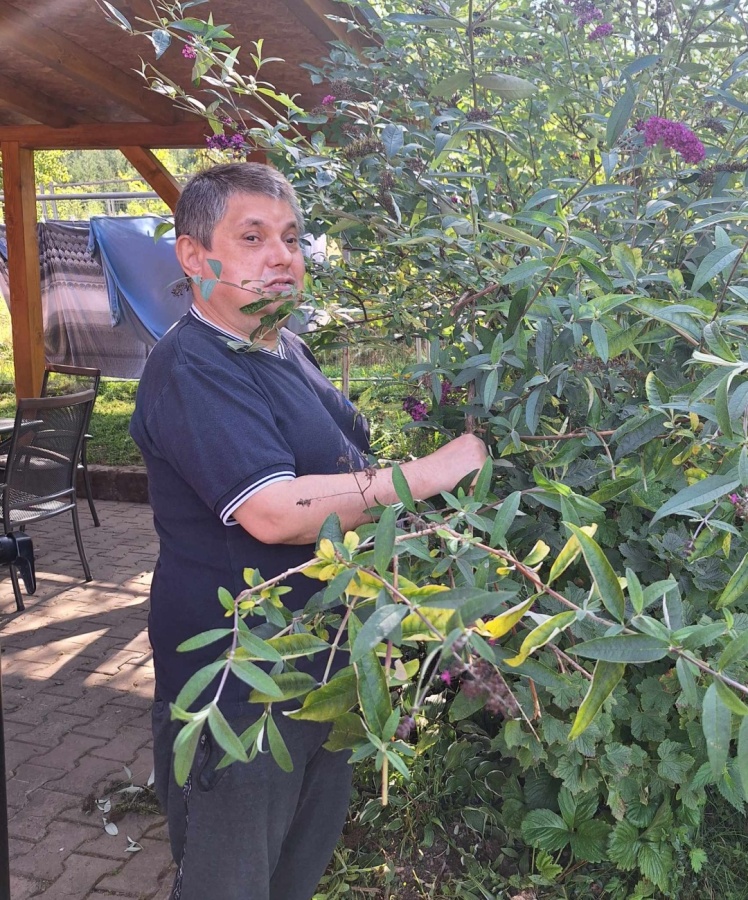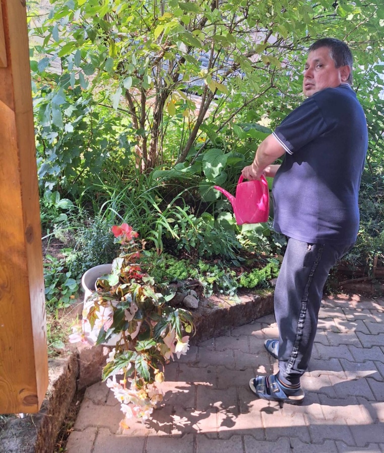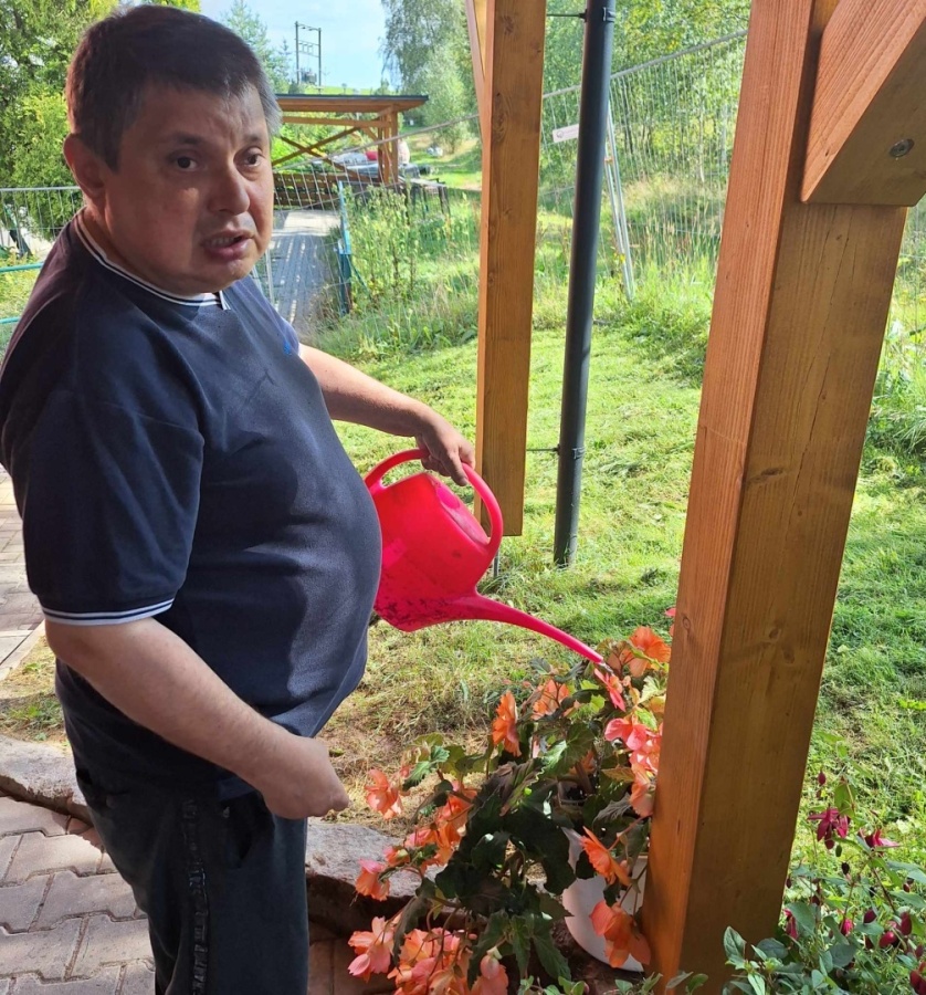 Jelikož zahradní práce probíhají momentálně u jiných domečku, tak jsme se s klienty Červeného domku do úpravy skalky a stromků pustili sami. 🤩🌳 Pan Tomáš pomáhal se stříháním odkvetlých květů, hrabal trávu po sekání a ještě zalil květiny v puclácích. 🌼💧 Pan Saša se chopil koštěte a byl nápomocen při zametání pergoly. 🧹