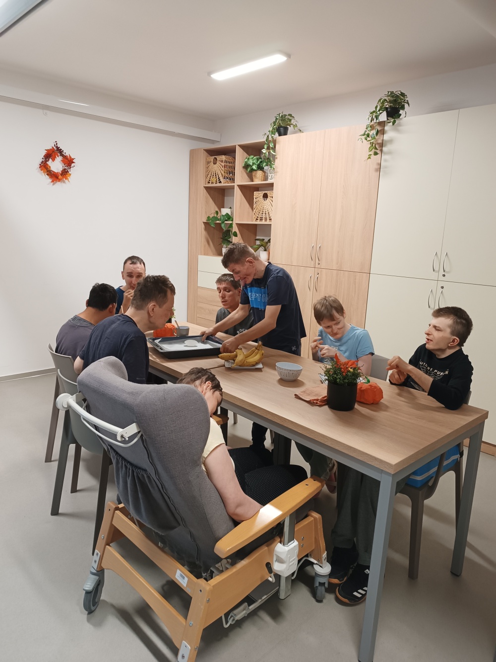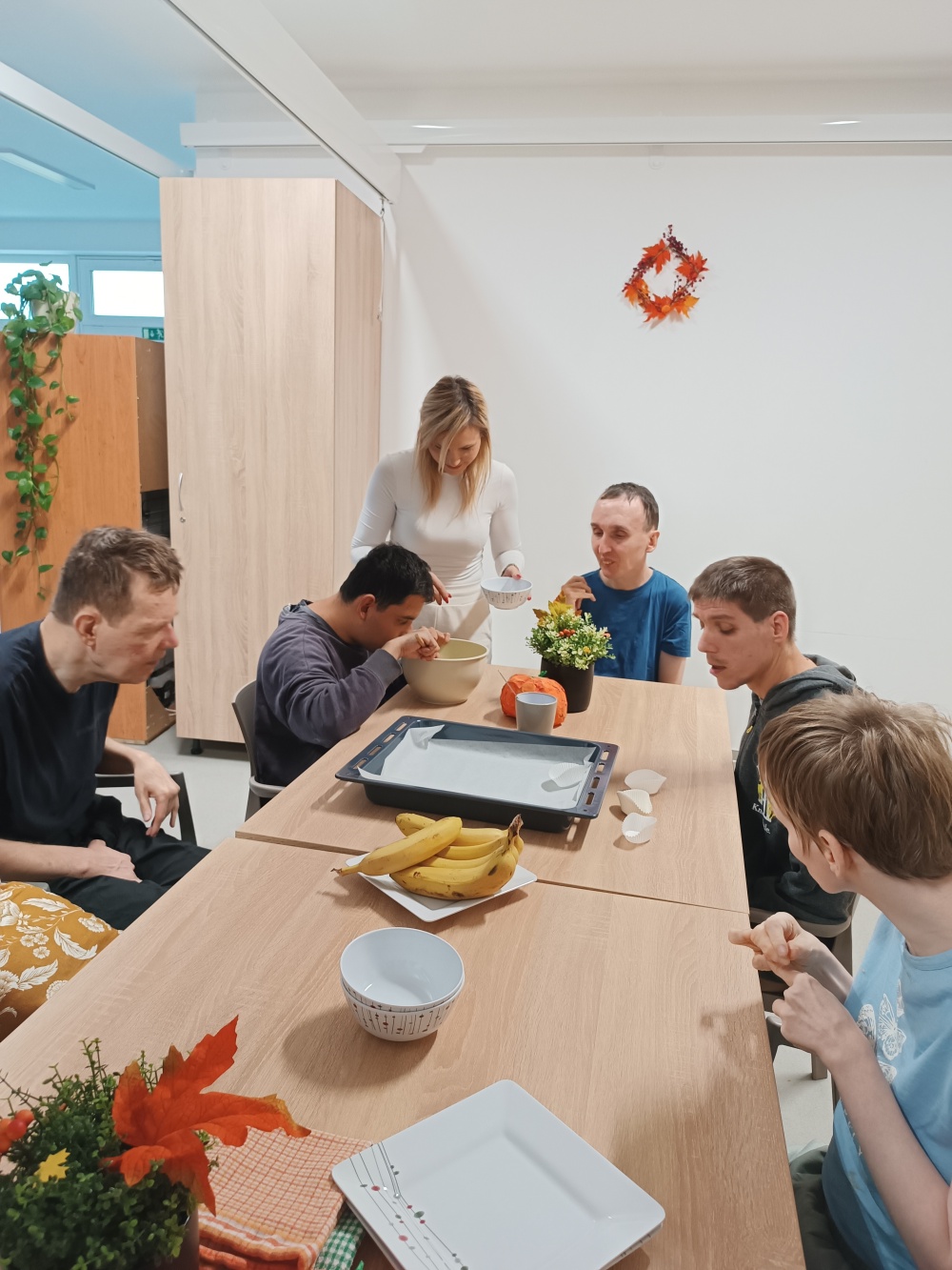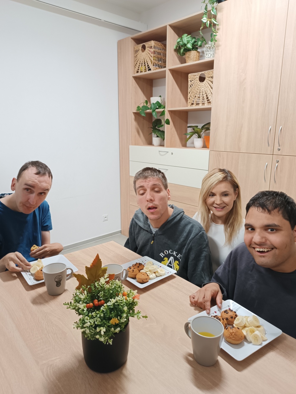 I za zamračeného počasí si klienti společně s asistenty Měsíčního bytu vybrali společnou aktivitu, a to pečení banánových muffínu s kousky čokolády. 🍌🧁 Klienti se zúčastnili přípravy, postupu i zhotovení cukrářského výrobku a nejen sledováním a poslechem, ale hlavně si sami vyzkoušeli přípravu sypkých surovin, následné zpracování těsta a zdobení kousky čokolády. 🍫 Po upečení si společně klienti pochutnali na banánových muffinách s čokoládou.