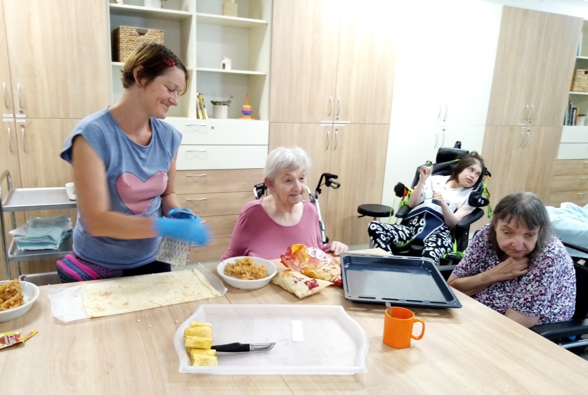 Klienti ze Slunečného oddělení se společně s asistenty pustili do pečení. 🥧 A co je více typické pro tento čas, než všemi oblíbený jablečný štrúdl. 🍎🍏 Každý z klientů se do činnosti zapojil dle svých možností.