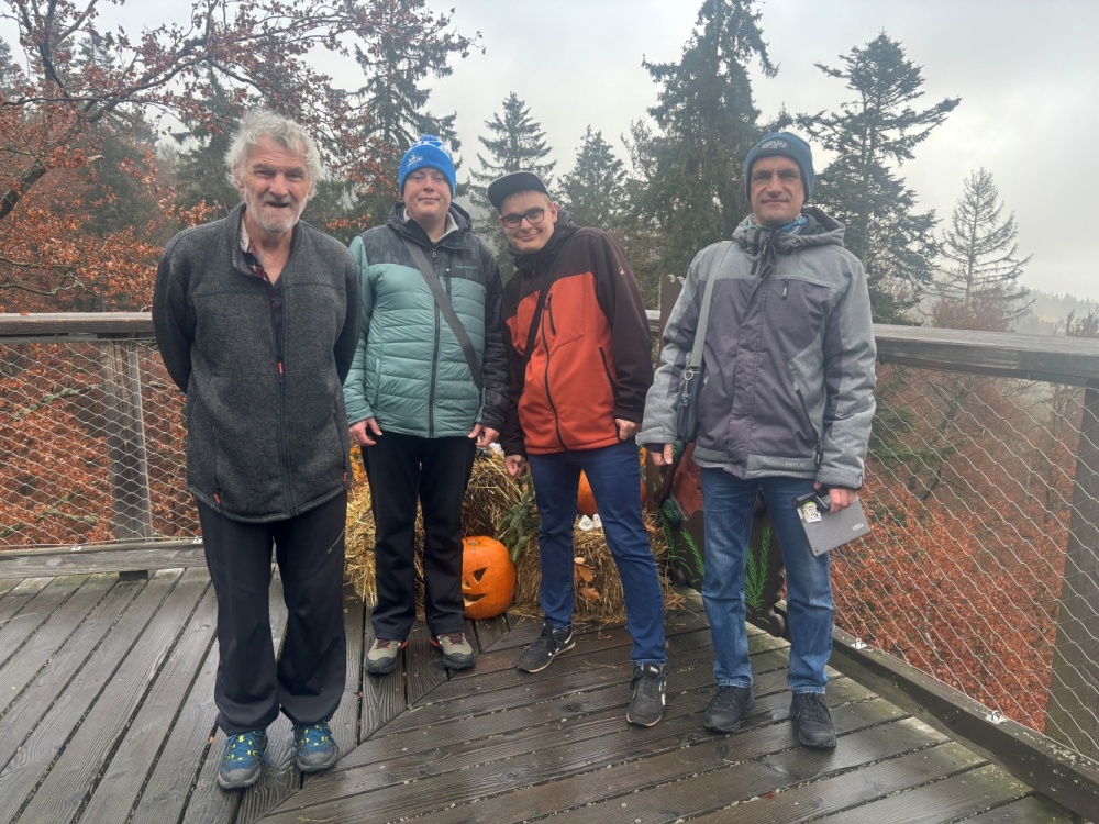 Měli jsme typické podzimní počasí s výhledem do mlhy. 🌫️ Stezka ale měla halloweenskou výzdobou, která se našim klientům z Azurového i Tyrkysového bytu velice líbila. 🎃👻