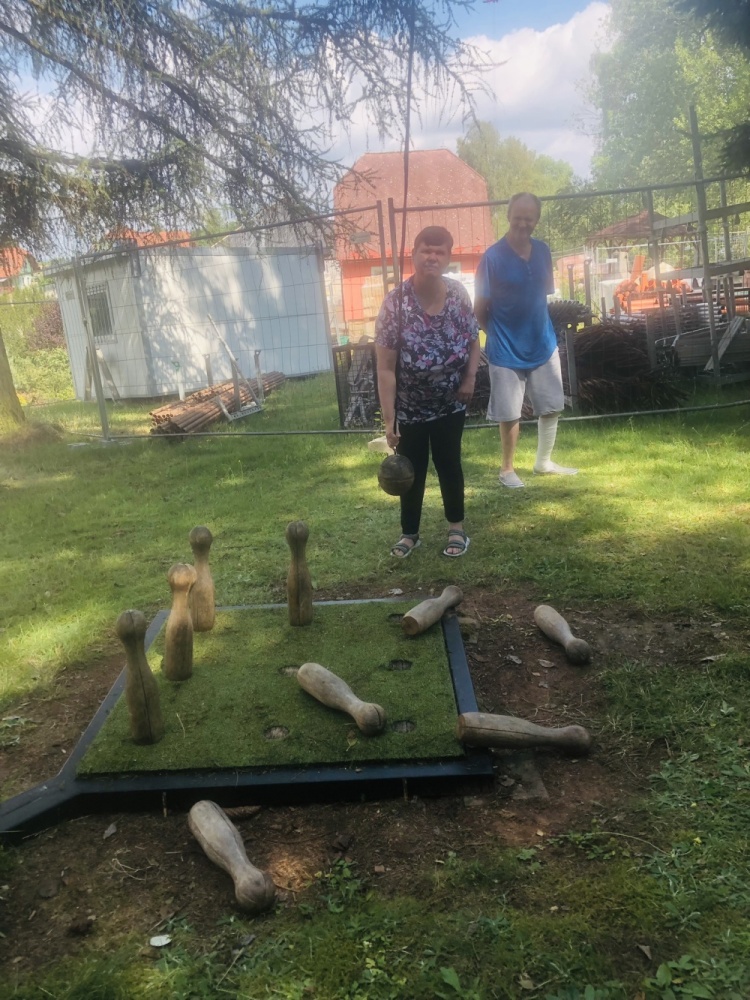 Asistenti uspořádali s klienty Žlutého a Fialového domku turnaj v kuželkách. 🎳 Klienti se náramně bavili, každý z nich byl odměněn na konci hry diplomem. 🏅