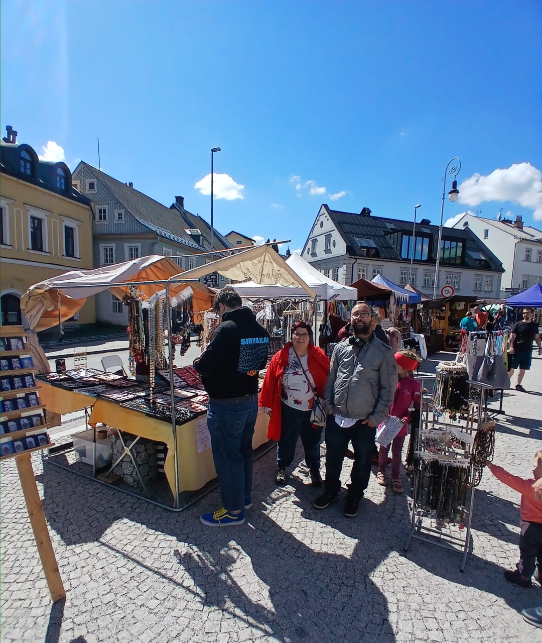 ☀️ Krásné počasí nás vytáhlo na výlet do Vrchlabí, kde se dnes konal jarmark rukodělných řemesel. Nakoupili jsme si, někteří i zatančili a zazpívali se skvělou živou hudbou, která byla příjemným zpestřením trhů. 🎶 Prošli jsme si také nejbližší okolí – zámecký park, kde jsou krásné dřevěné sochy a také záchranná stanice pro různé živočichy. 🦉