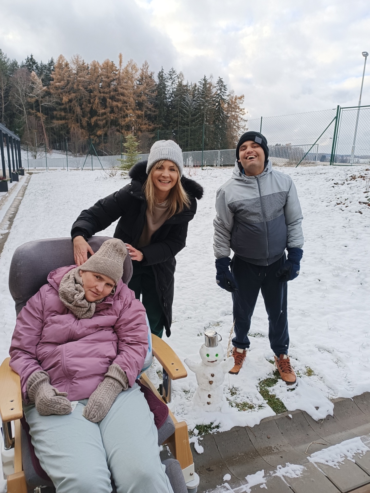 Tak ne jen na horách, ale i my jsme se konečně dočkali v Barevných domkách sněhové nadílky. ❄️🏡 Sice nenapadla kupa sněhu, ale i tak si uživatelé Měsíčního bytu dokázaly zpříjemnit pobyt na venkovní terase, i když byl velmi chladný den. Společně jsme vytvořili našeho prvního letošního sněhuláka, na kterého jsme byli pyšní. ☃️