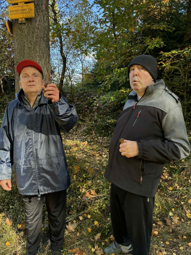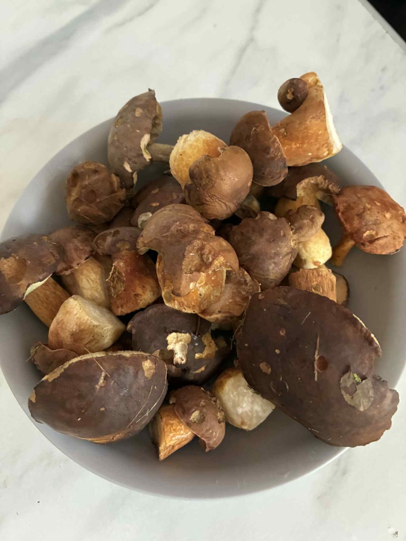 S pány Petrem a Sašou z Červeného domku jsme využili krásného počasí a po obědě se vydali na krátkou procházku do lesa.🌲🧺 Našli jsme i pár hříbků hnědých. 🍄🟫 Na přání všech obyvatelů domácnosti byla k večeři houbová omeleta. 🍽️ Všichni si moc pochutnali a příště prý vyrazíme znovu. 👍🏻