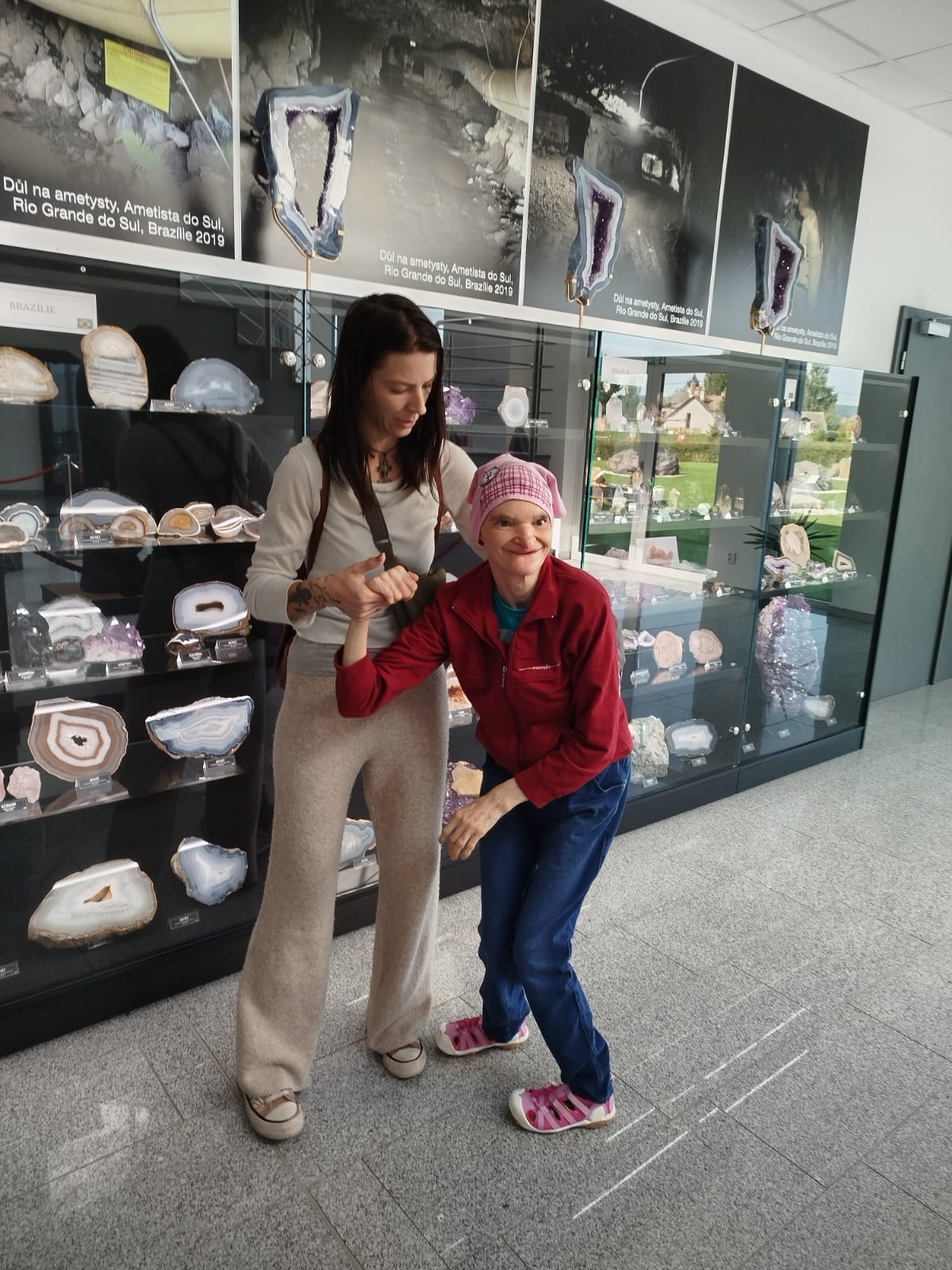 Aktivizační pracovnice Natálie a Anna s klienty ze Slunečného bytu navštívili Galerii minerálů ve Dvoře Králové. 🪨💎 Klienti si výlet moc užili a při prohlížení vystavených minerálů byli nadšení. ☺️ Sbírka je to vskutku obrovská. Doporučujeme k navštívení. 👍🏽