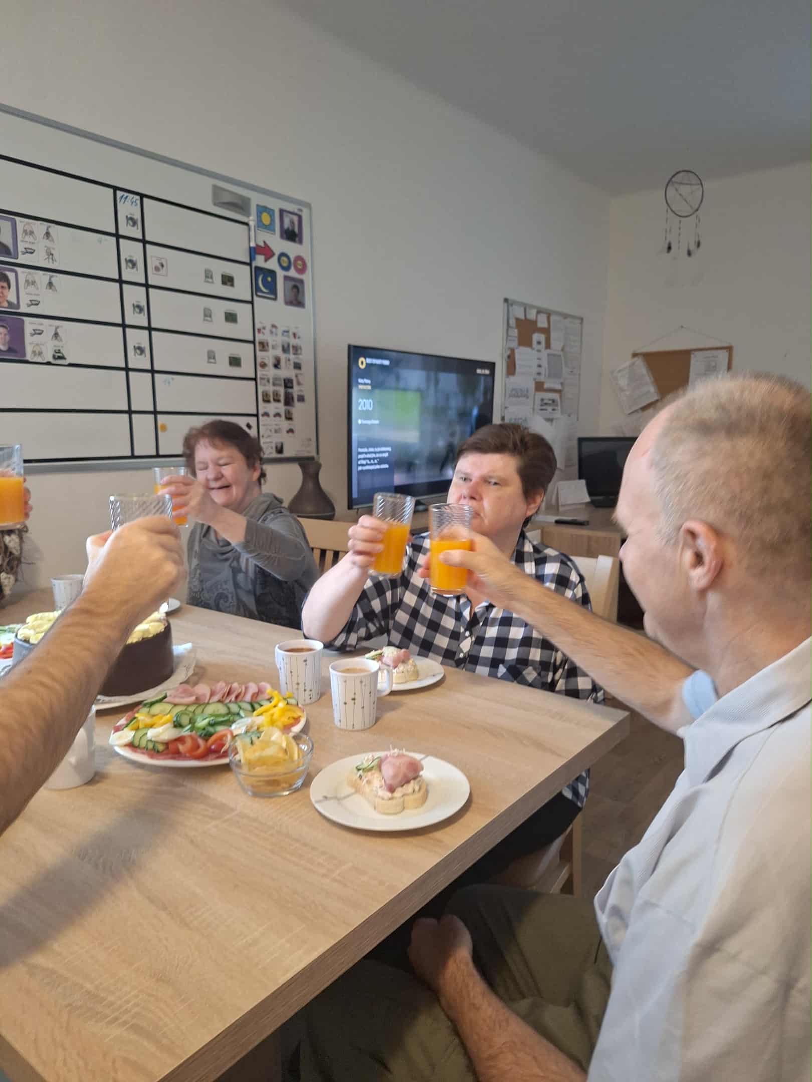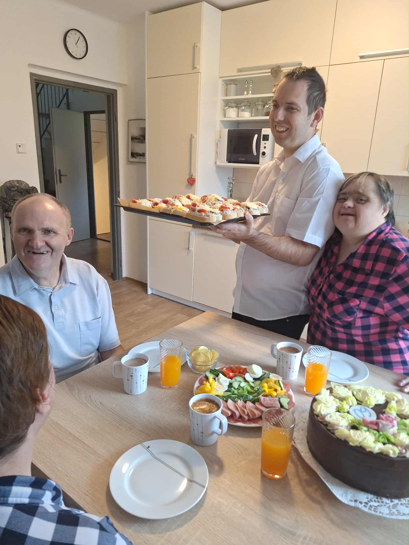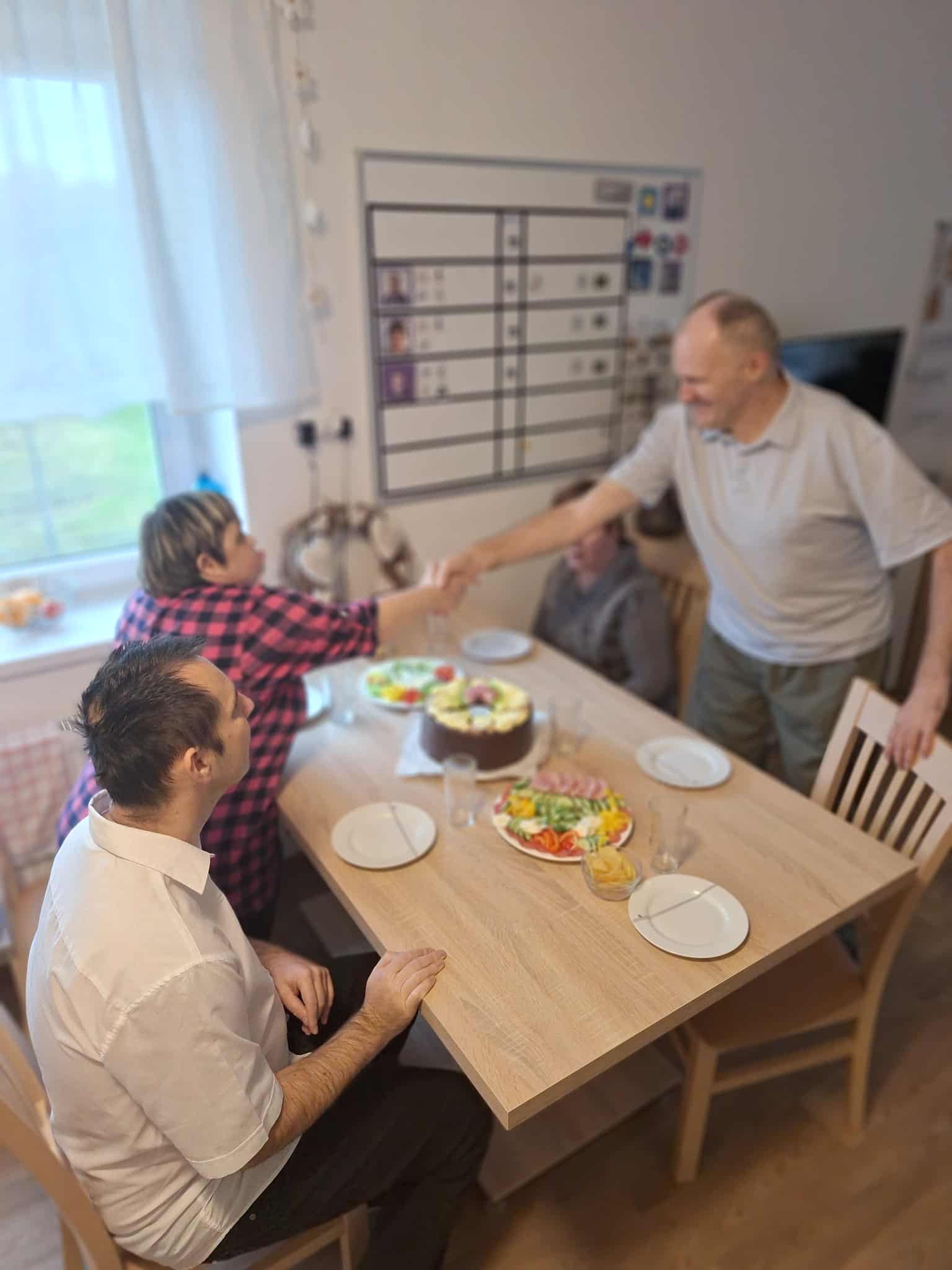 Na domku nás zastihla krásná událost, a to oslava narozenin pana Jaroslava. Nejde o ledajaký rok, ale o nádhernou ,,šedesátku", tak jsme se rozhodli to pořádně oslavit. 🍾🥂 Dopoledne se klienti z domečku účastnili příprav a vzali to opravdu zodpovědně. 👨🏻🍳 Paní Šárka krájela zeleninu na obložené talíře, pan Štěpán loupal vajíčka, chystal potřebné nádobí a náš oslavenec byl též nápomocný. Vyčkával, co bude a odpoledne to mohlo vypuknout. 🥳 Na oslavu jsme pozvali i klienty z Modrého domku. Všichni jsme společně panu Járovi popřáli, předali plno dárků a pak rozjeli mejdan, jak se patří. 🎁🎉 Hrála hudba, bylo veselo a dobré jídlo k tomu. Den se nám vydařil a já za všechny přeji ještě jednou panu Jaroslavovi pevné zdraví, pohodové přátele, radost, smích a ještě hodně setkání s jeho milovanou maminkou. 🫶🏻 Velký dík zde patří panu Janatovi, který je celou dobu panu Jaroslavovi velkou oporou, kamarádem a prostě bezvadným parťákem. Díky za takové lidi. ♥️