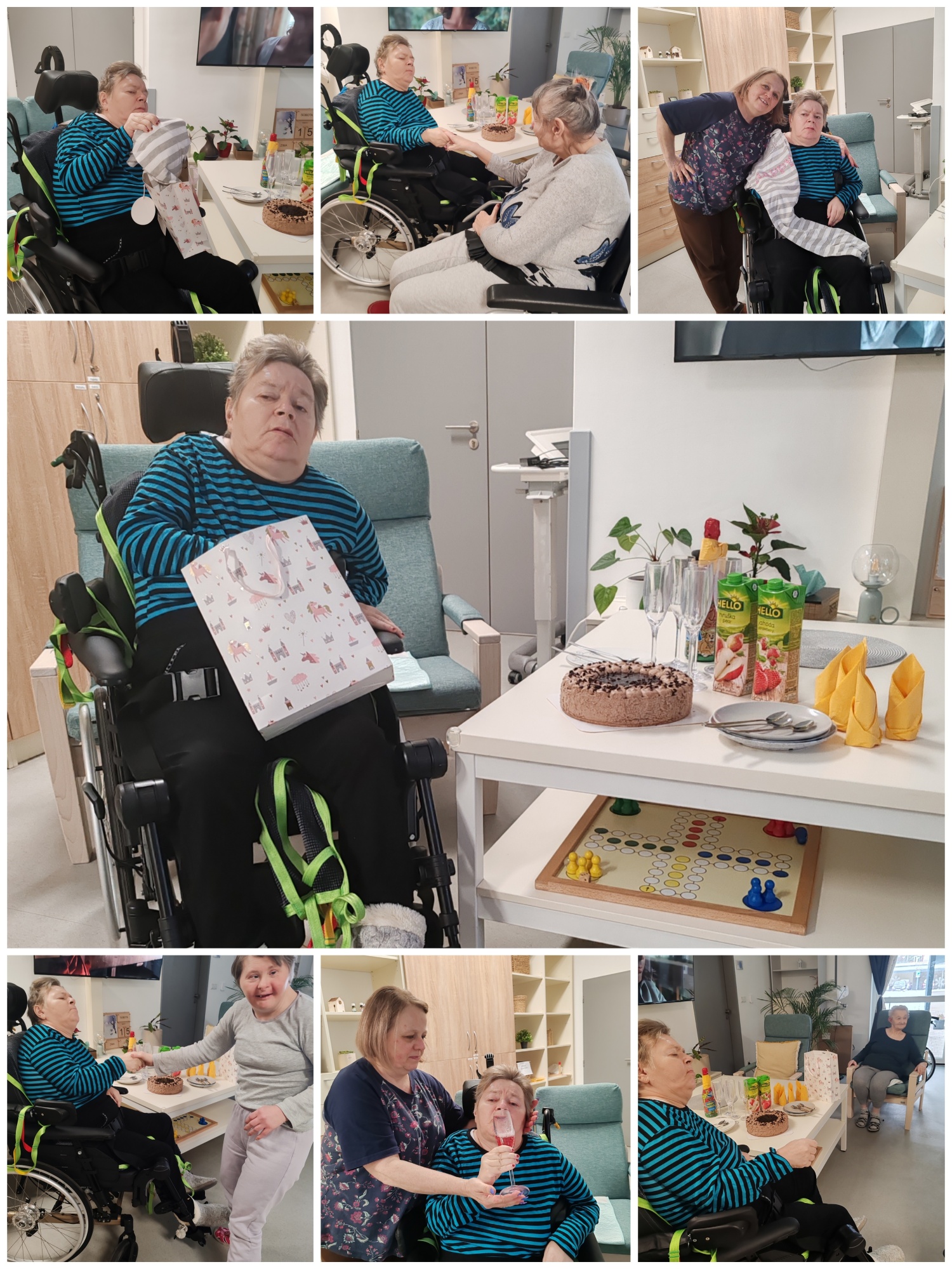 Paní Romana společně se svými spolubydlícími oslavila své 57. narozeniny. 🥂 Oslava se vyvedla a všichni si užili příjemné odpoledne u dortu a dalšího občerstvení. 🎂 Paní Romana dostala mimo jiné ke svým narozeninám oblečení, což je dárek, který potěší většinu žen. 👗😇