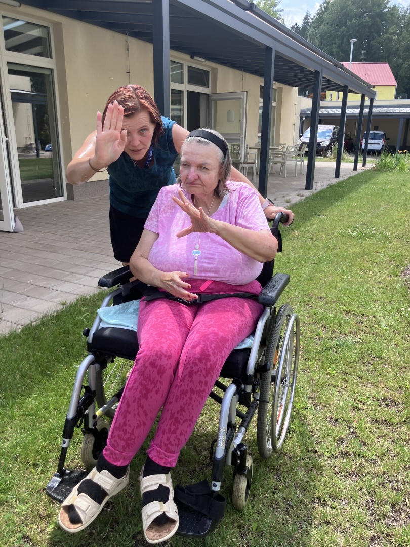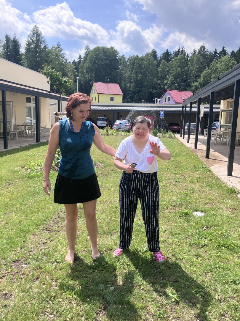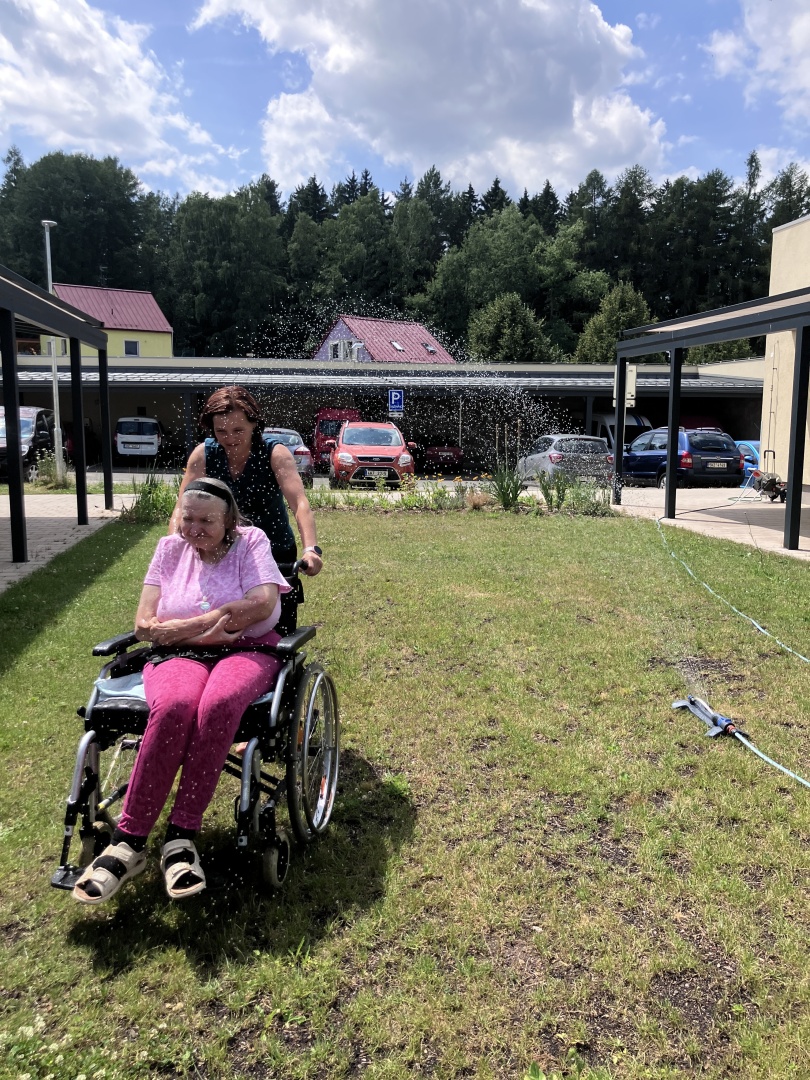 Klienti Hvězdného bytu dnes využili krásného letního počasí a za doprovodu asistentů se osvěžili pod vodním rozprašovačem. 😎💦 Klienti byli veselí a podle všeho si tuto aktivitu užili. 😄 Následovalo občerstvení v podobě čerstvého ledového melounu, který všem přišel k chuti. 🍉