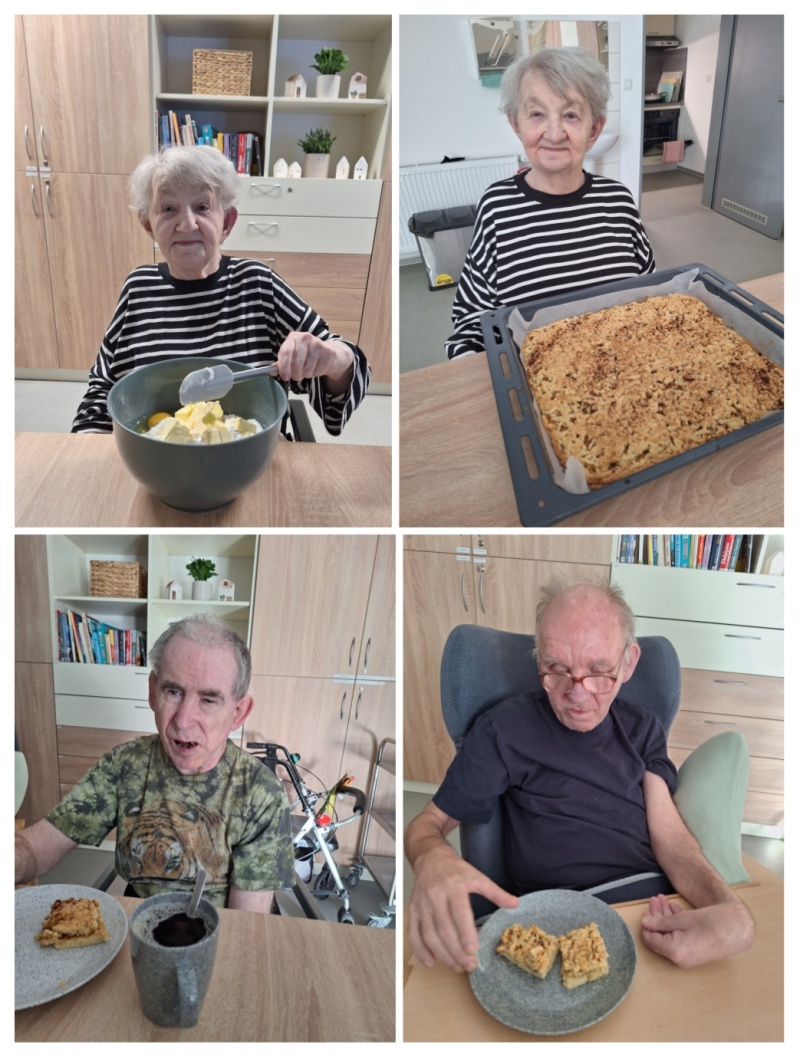 Na Hvězdném bytě si k nedělní svačině klienti s podporovou asistentů upekli jablečný koláč. 🍎 Už podle fotografií vypadal skvěle. A co máme zpětnou vazbu z domácnosti, byl velmi chutný a dlouho na plechu nezůstal. 🥧🍏