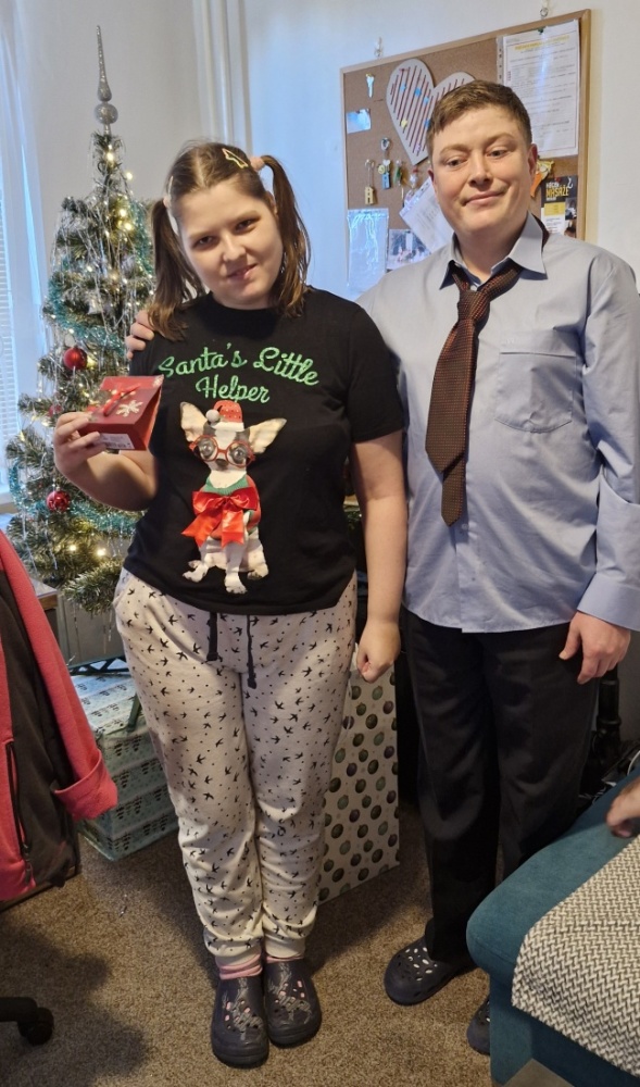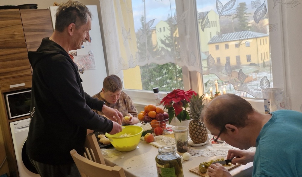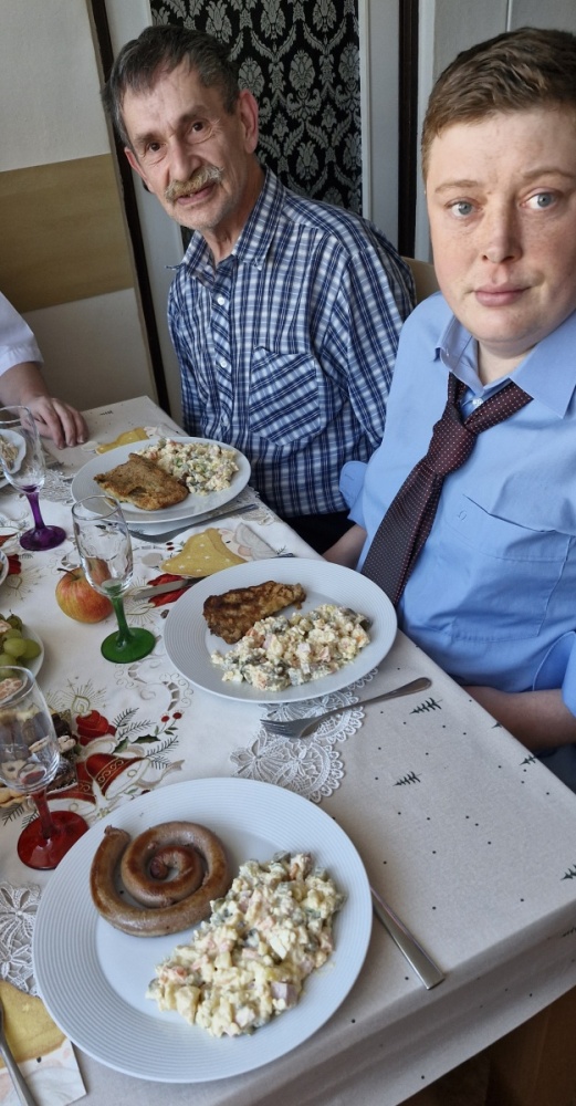 Klienti Tyrkysového bytu se chystali na Štědrý den již od dopoledních hodin. 👨🏻🍳 Přípravy zvládli levou zadní a pak se již všichni slavnostně oblékli a zasedli ke štědrovečerní večeři. 🌟 Po jídle se klienti odebrali k vánočnímu stromečku, kde se již těšili z dárků. 🎄🎁 Aby atmosféra Vánoc byla kompletní, nemohly chybět ani koledy. ❄️🎶