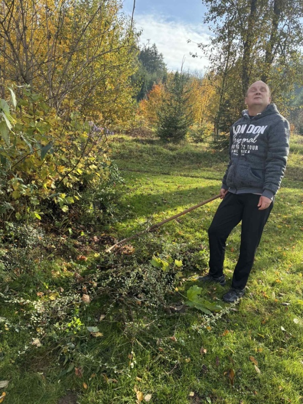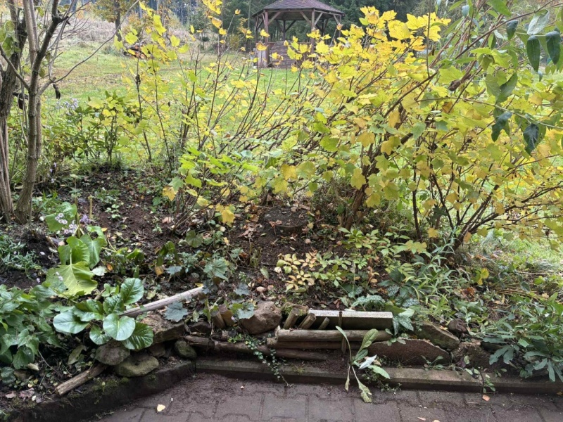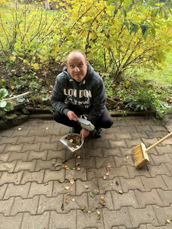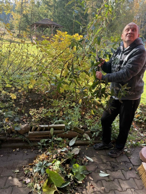 S panem Petrem jsme využili hezkého počasí a pustili se do skalky a keřů okolo domku. ☀️🏡 Ostříhali jsme staré květy motýlího keře, otrhali uschlé listy rostlin a shrabali listí. 🧹🍂 Navíc jsme ještě zametli a připravili pergolu na zimu. Bylo to prima odpoledne a pan Petr byl s výsledkem moc spokojený. 👍🏻