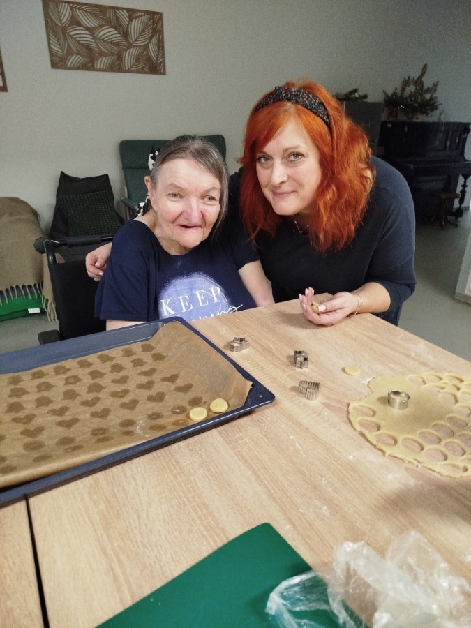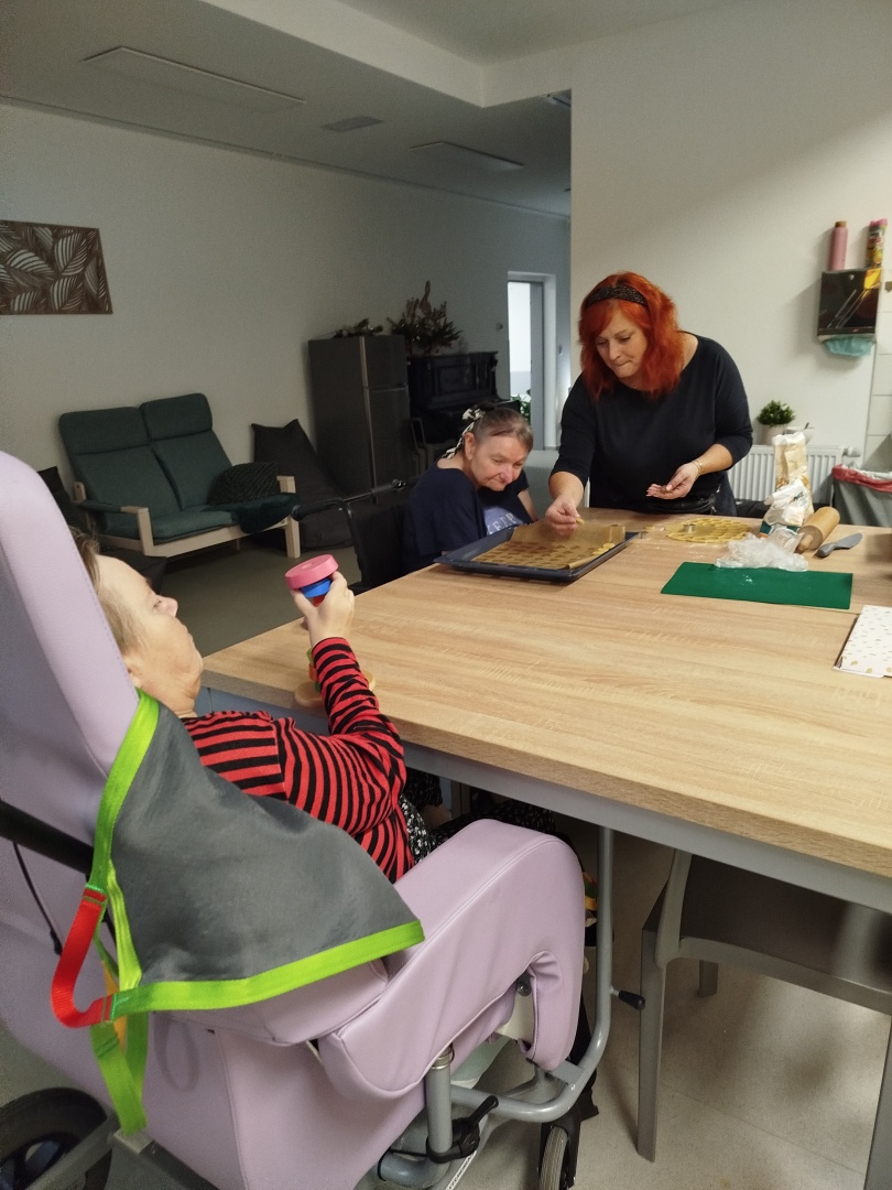 Klienti z Měsíčního bytu se rovněž podíleli na vánočních přípravách. 🌟 S podporou asistentů pekli, vytvářeli vánoční dekorace a společně se chystali na vánoční čas. ⭐🎄