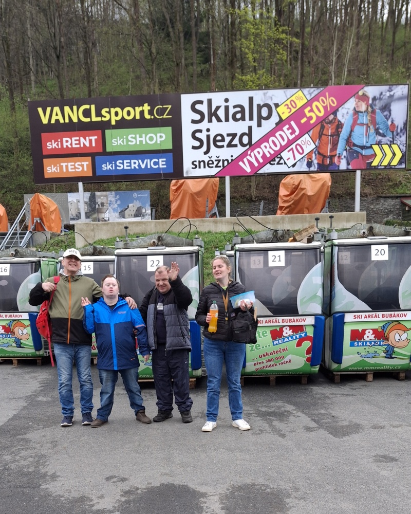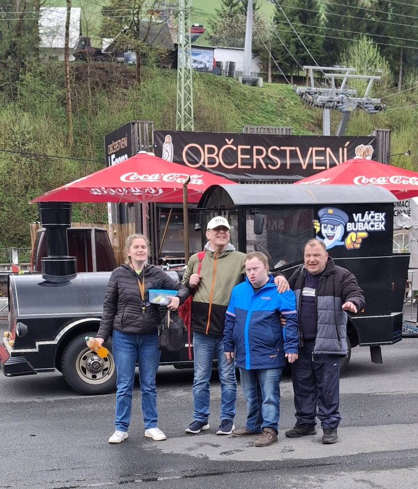Klienti z Oranžového bytu vyjeli na výlet do Vrchlabí, kde na ně již čekal u vlakového nádraží turistický vláček Bubáček. 🚂 S vláčkem se projeli vyhlídkovou jízdou po městě Vrchlabí až do Bubákova, kde si klienti spolu se sympatickým řidičem zastavili v místním bufetu. ☕