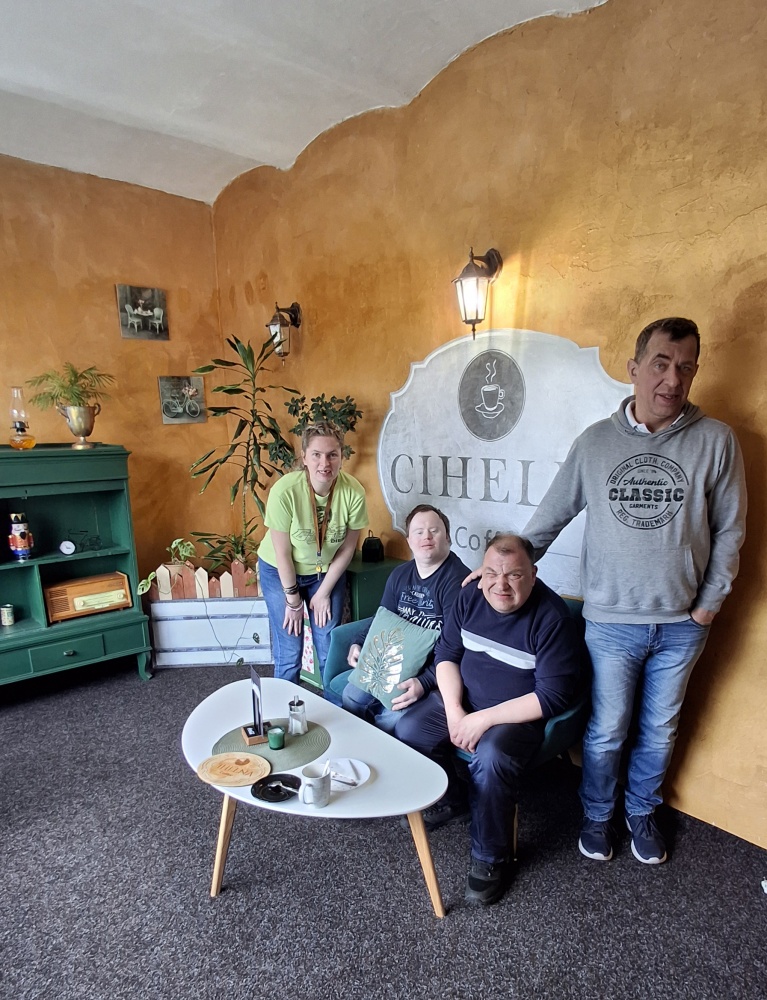 Při zpáteční cestě autem se klienti nakonec zastavili v Hostinném v cukrárně, kde si pochutnali na kávě a zákusku. 🧁