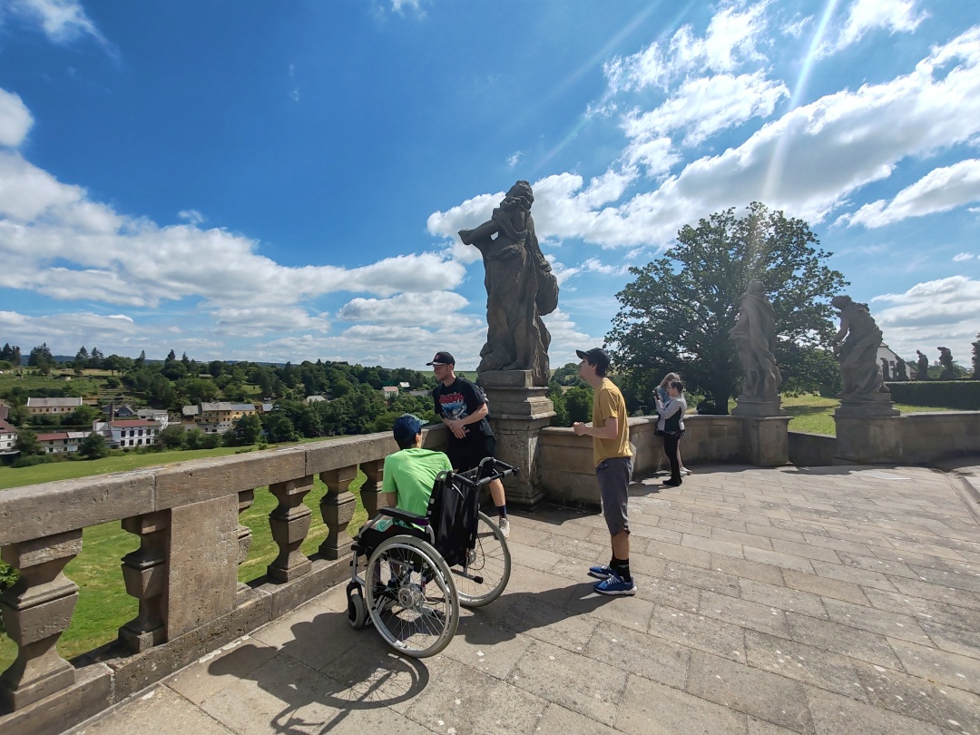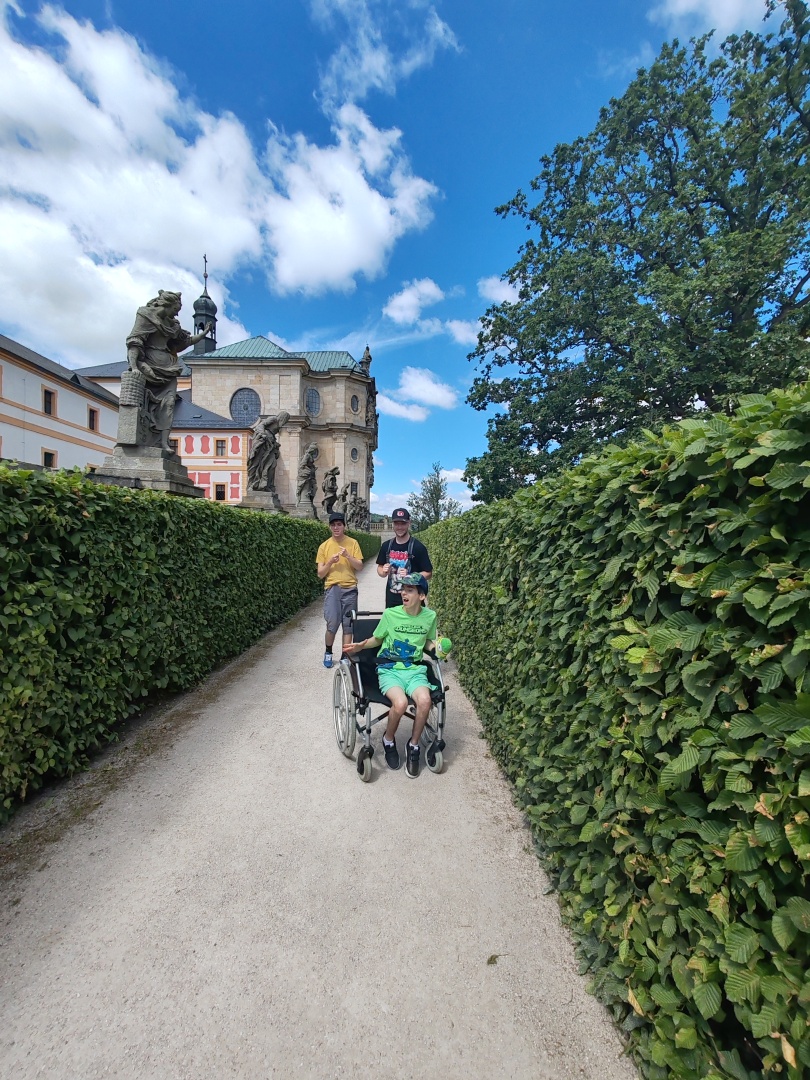 Pan Martin a pan Vojtěch si udělali s asistenty pěkný den na výletě po Kuksu a okolí. ☀️🚶🏻➡️👨🏻🦽➡️ Během dopoledne jsme si udělali procházku po zámecké zahradě, prošli jsme se barokní venkovní částí hospitálu Kuks až do vesnice, kde si klienti krátce odpočinuli. Následně jsme se přesunuli autem do Stanovic, kde si klienti dali skvělý oběd ve Šporkově mlýně. 🍽️👍🏻