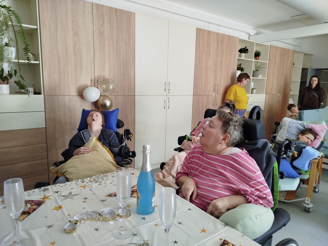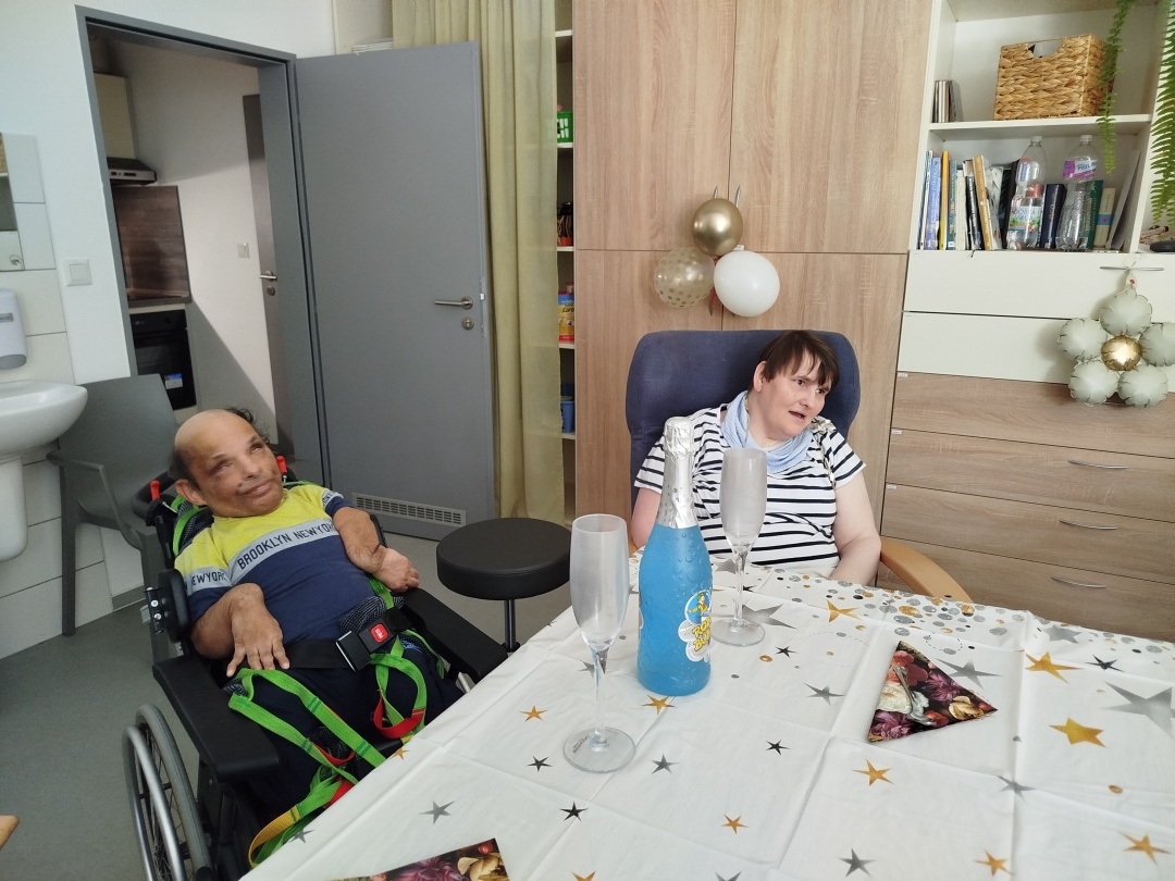 Paní Helena se svými spolubydlícími z Hvězdného bytu oslavila své narozeniny tak, jak se patří. 🥳 Nemohl chybět krásný dort, na kterém si všichni přítomní pochutnali, přípitek na zdraví oslavenkyni i náležitá párty dekorace. 🎈🎊