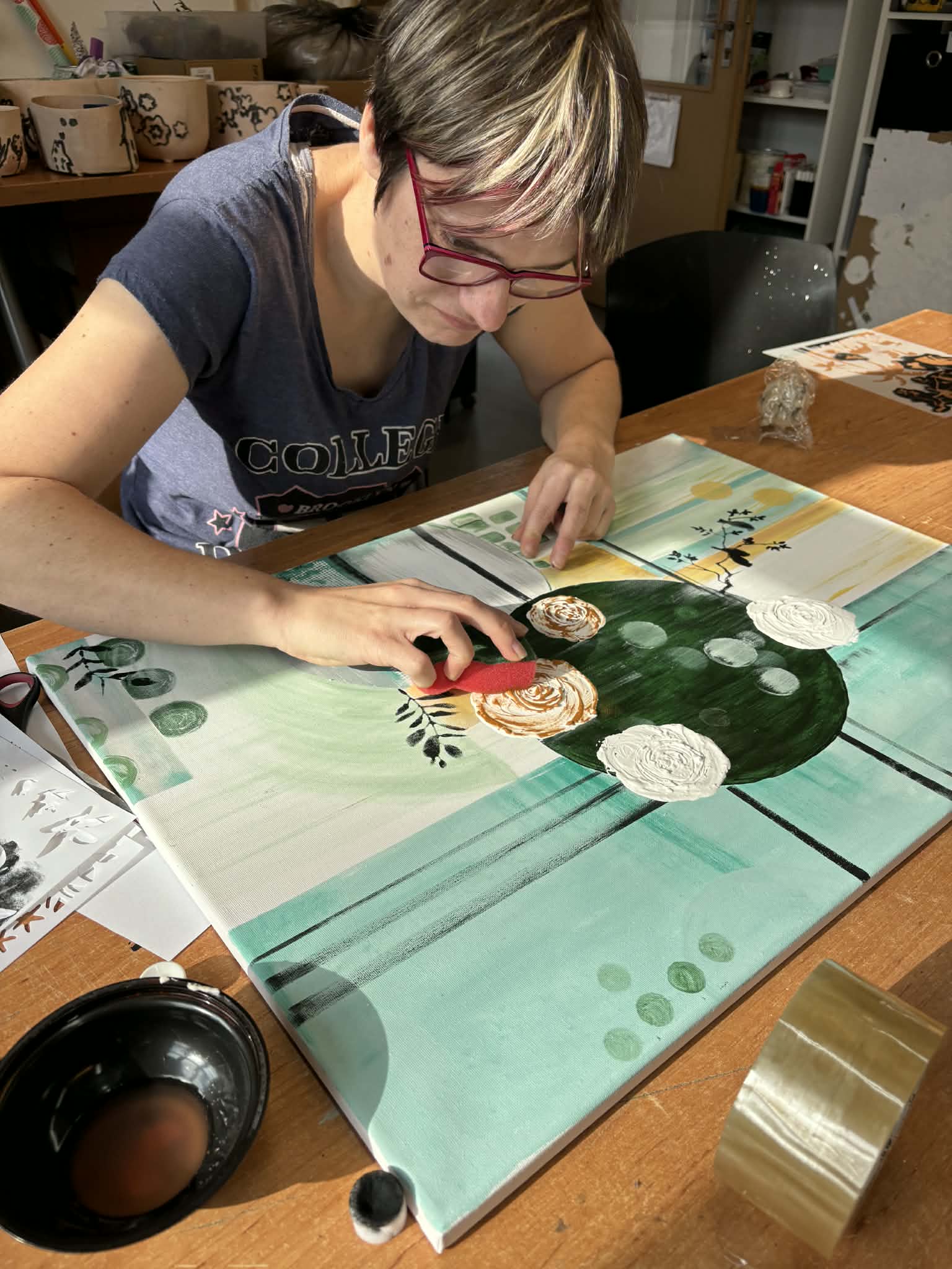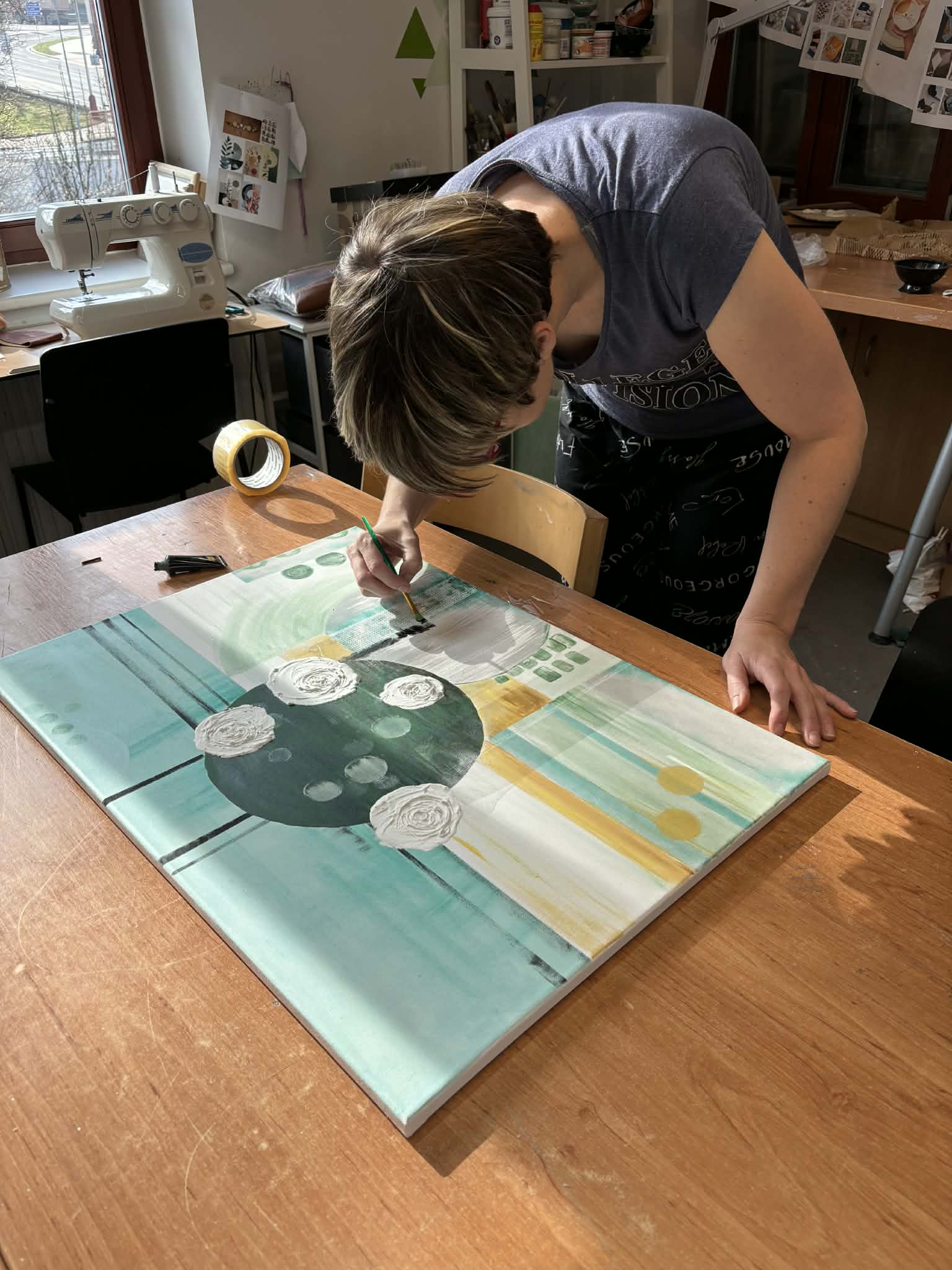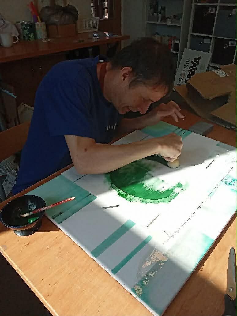 Klienti, kteří docházejí do sociálně terapeutické dílny, se tentokrát pustili do vlastní tvorby obrazu. 🖼️🎨