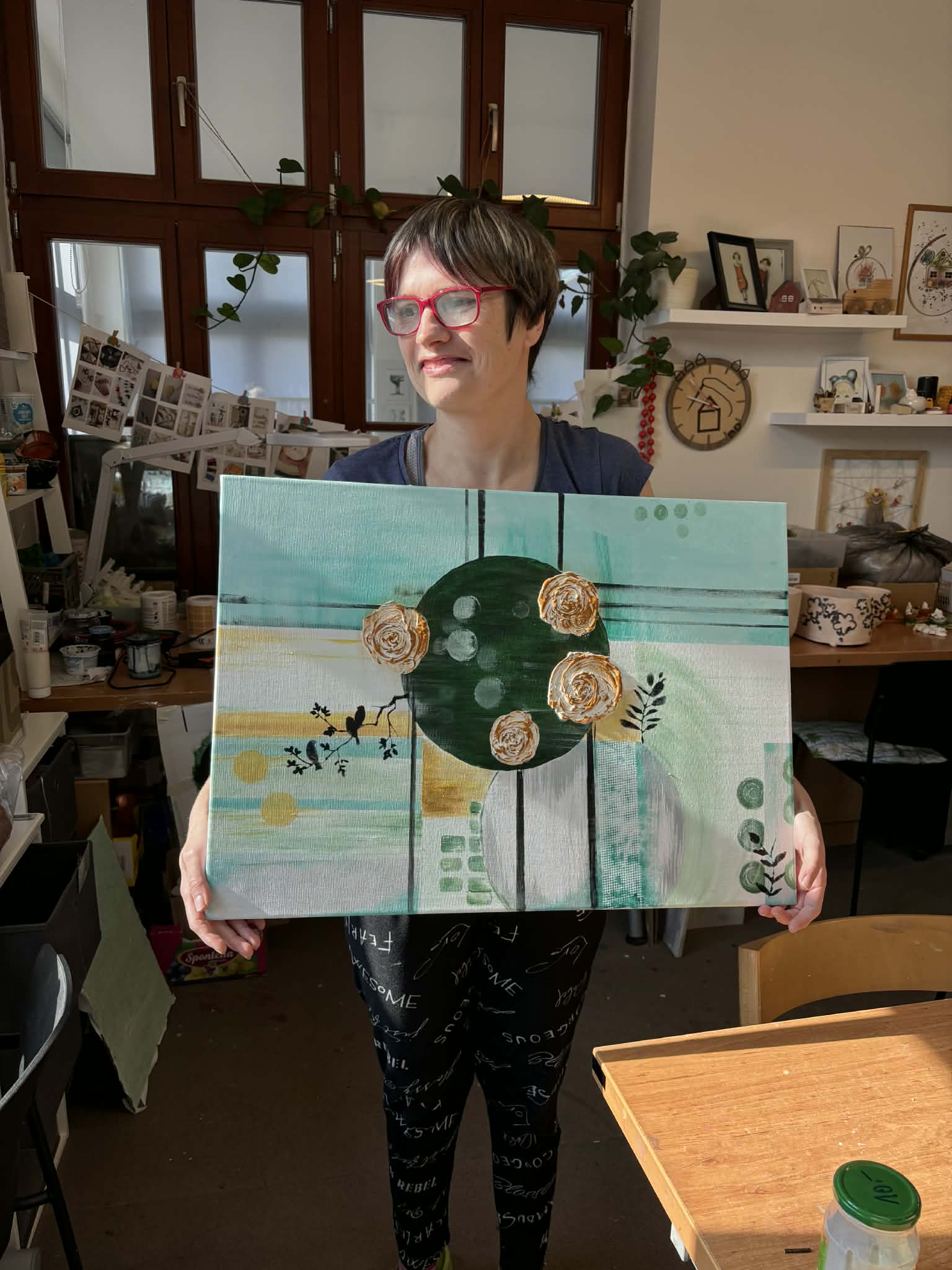 Nápad vzešel přímo od klientů. ☺️ Rozhodli se, že si chtějí vyrobit obraz, který ozdobí jejich společnou domácnost. A tak se do toho s chutí pustili právě v Barevné dílně. Na návrhu spolupracovali s pracovnicí, která je celým procesem provázela a vedla. Samotná realizace už ale byla především v jejich režii. 👩🏻🎨 Každý přiložil ruku k dílu a výsledek stojí za to.