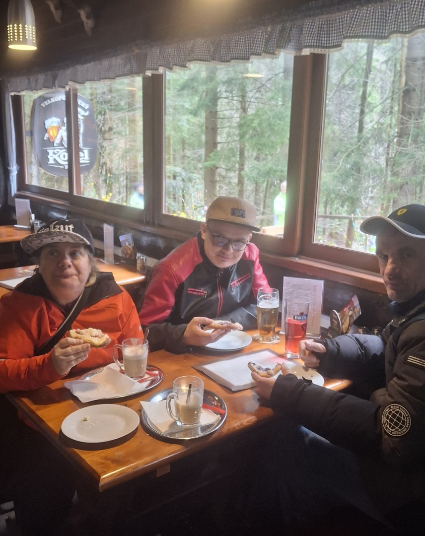 Klienti z Azurového bytu se vypravili do horského městečka Harrachov. ⛰️ I když klienty čekala poměrně náročná cesta, zvládli ji skvěle a došli až na Mumlavský vodopád, který všechny nadchl. Během výletu si udělali příjemnou pauzu na kávu i něco sladkého, kde si odpočinuli a načerpali síly. ☕🧁 Na závěr nechyběla návštěva harrachovské sklárny, která byla pro klienty velkým zážitkem. Celé odpoledne se neslo v příjemné atmosféře a klienti si výlet opravdu užili. 🤩