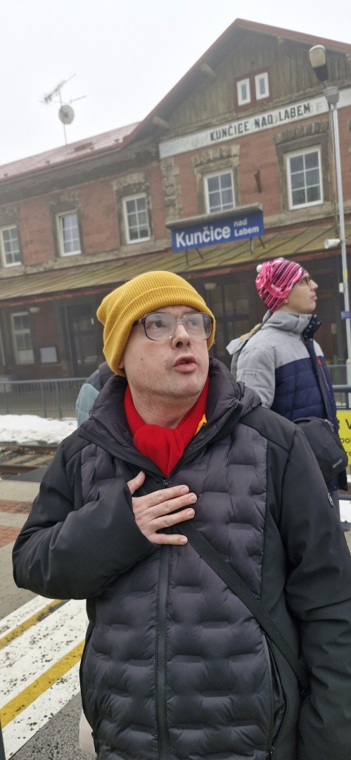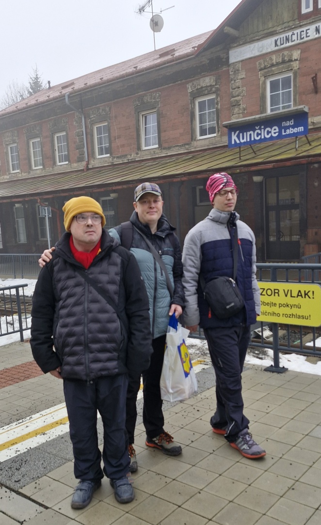 Pánového z Tyrkysového bytu z Vrchlabí se vypravili na výlet. Jako dopravní prostředek zvolili vlak, který je z Vrchlabí dovezl do Hostinného. 🚂 V Hostinném se zastavili na dobrý zákusek. 🍰☕ Následně si dopřáli ještě procházku v délce cca 10 km. 🥾